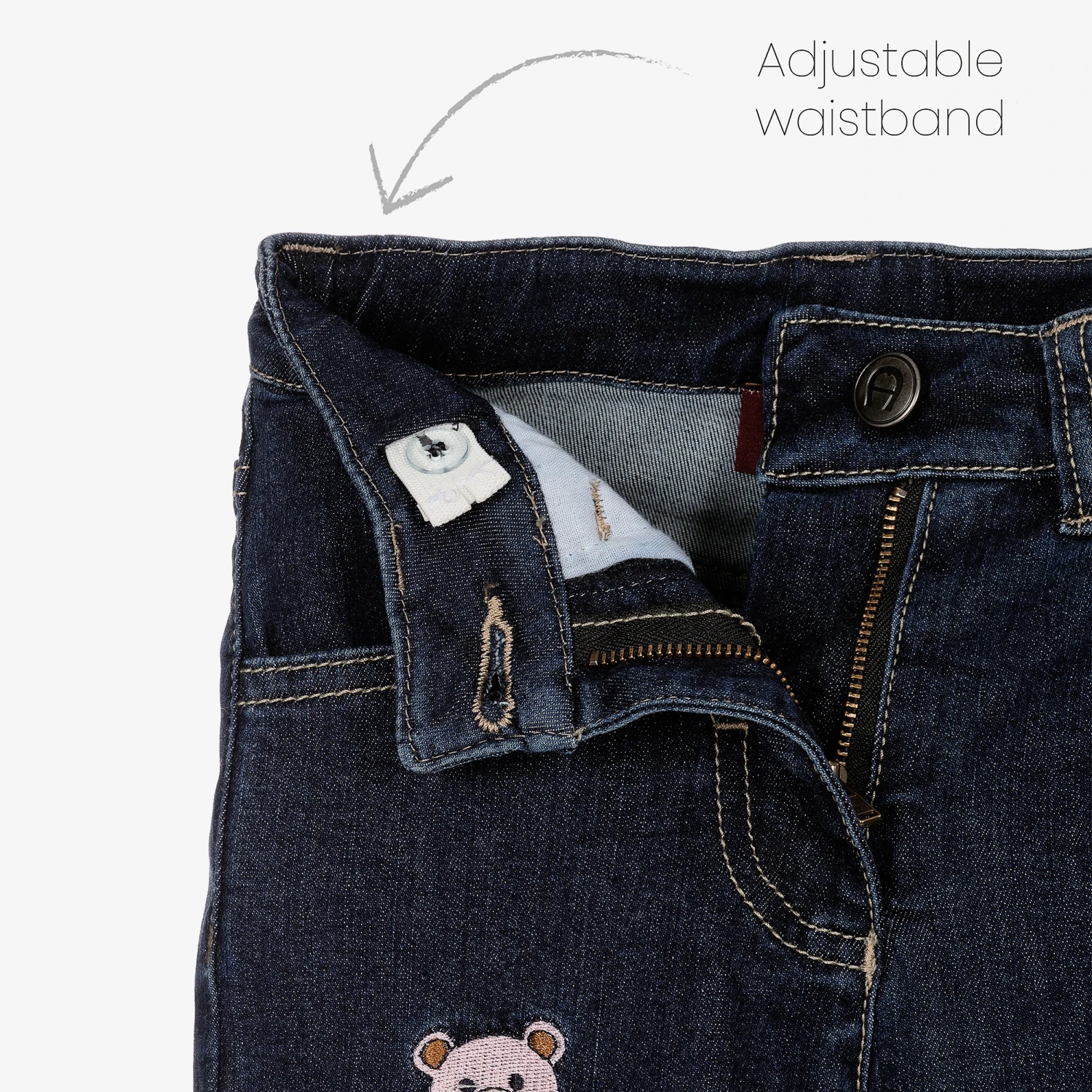 Embroidered teddies and logos in pink, beige and gold add a cute touch to these dark blue AIGNER jeans for girls. Made in soft and stretchy denim, they have a relaxed straight fit and pockets on the front and back. The waistband is adjustable for a good fit and they fasten with a zip and branded button.