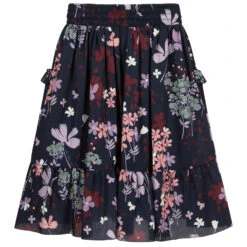 Pretty white skirt for girls by Billieblush, made in a double layer of white cotton voile. It has embroidered tropical designs in colourful neon thread and an elasticated waistband with matching neon embroidery.