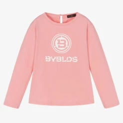 Pink long-sleeved top for girls by Italian brand Byblos, with a white rubberised B logo printed on the front. Easy and comfortable to wear. it is made in soft cotton jersey.