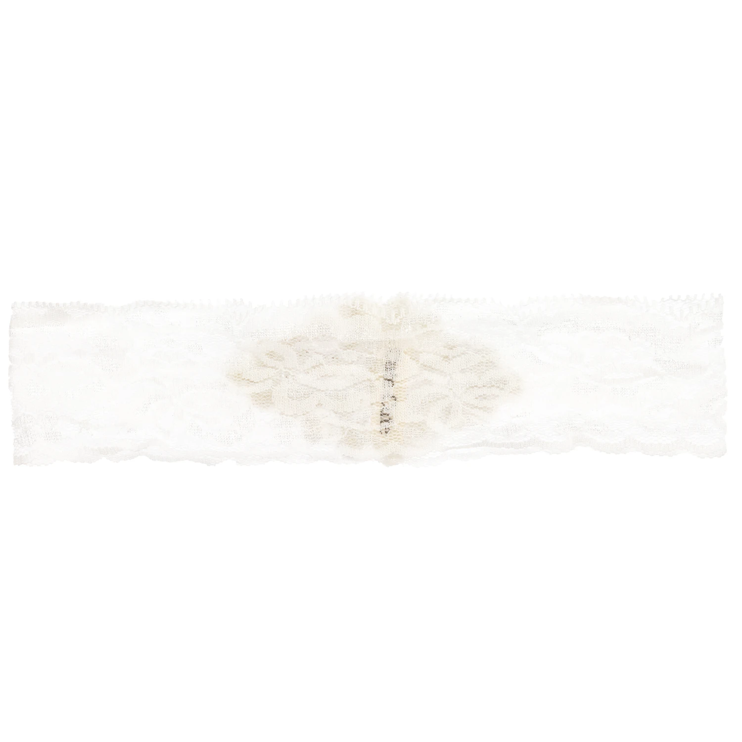 Cute Cute girls very pretty crystal design on a soft, stretchy wide lace ivory headband.