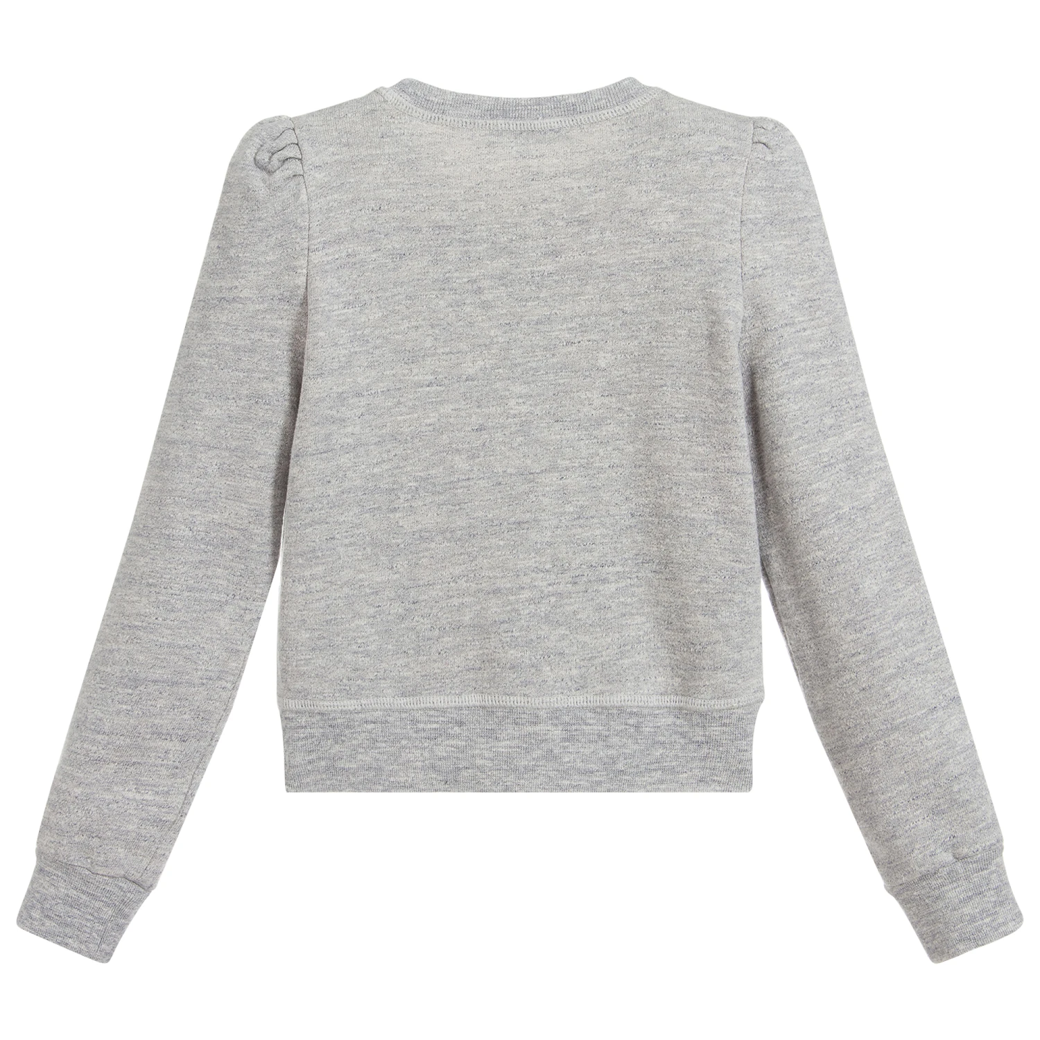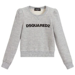 Grey marl sweatshirt for girls by Dsquared2, with puffed shoulders. It is made in soft cotton jersey and has a black felted logo on the front.