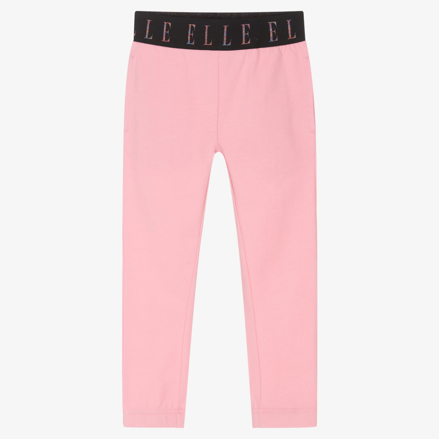 Fun and sporty for girls, these pink leggings are by Elle. The elasticated waistband is woven with a glittery and colourful jacquard logo. Easy and comfortable to wear, they are made in soft cotton blend jersey and have useful side seam pockets.