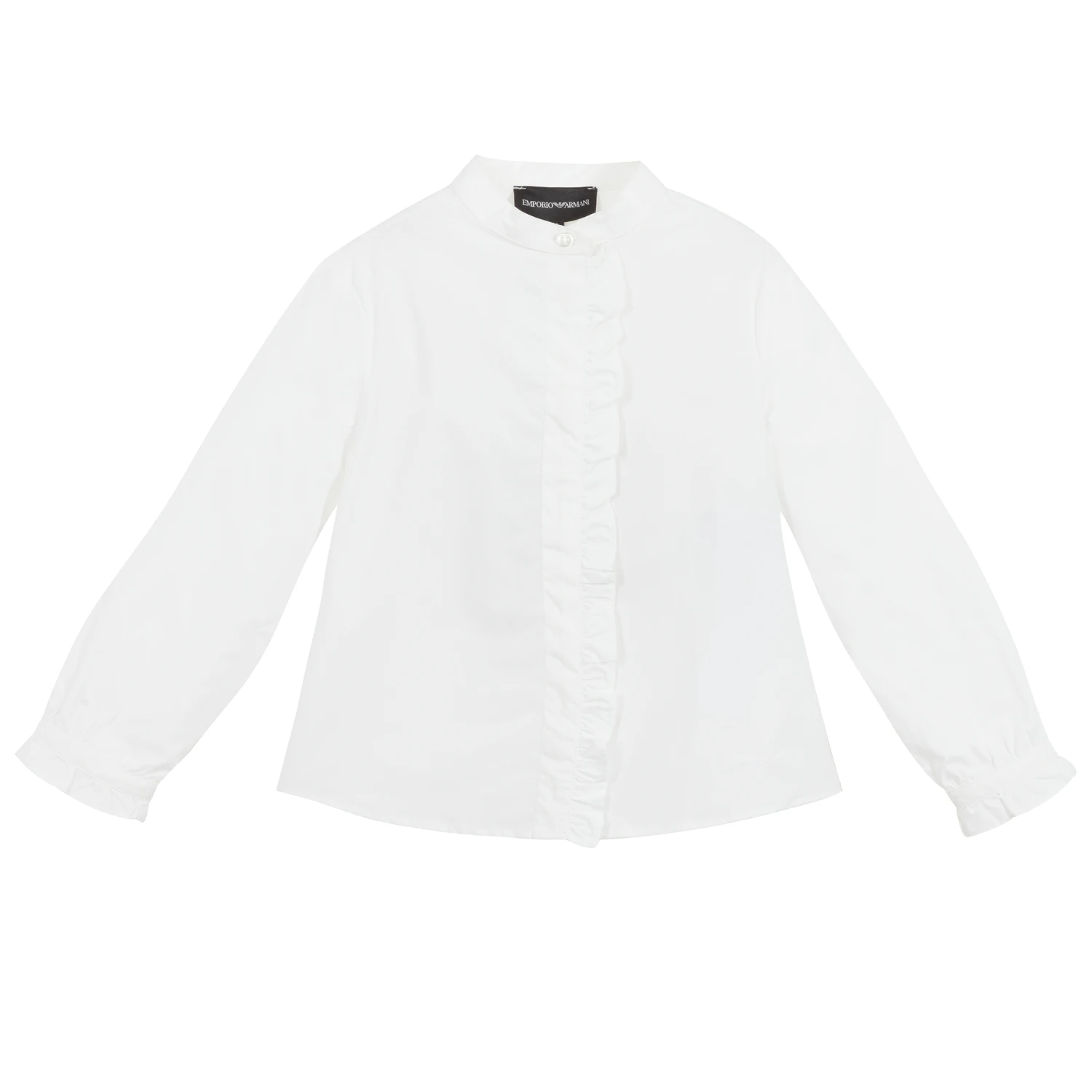 A smart white, collarless shirt for girls from Emporio Armani, with eagle logo embroidery at the hem.