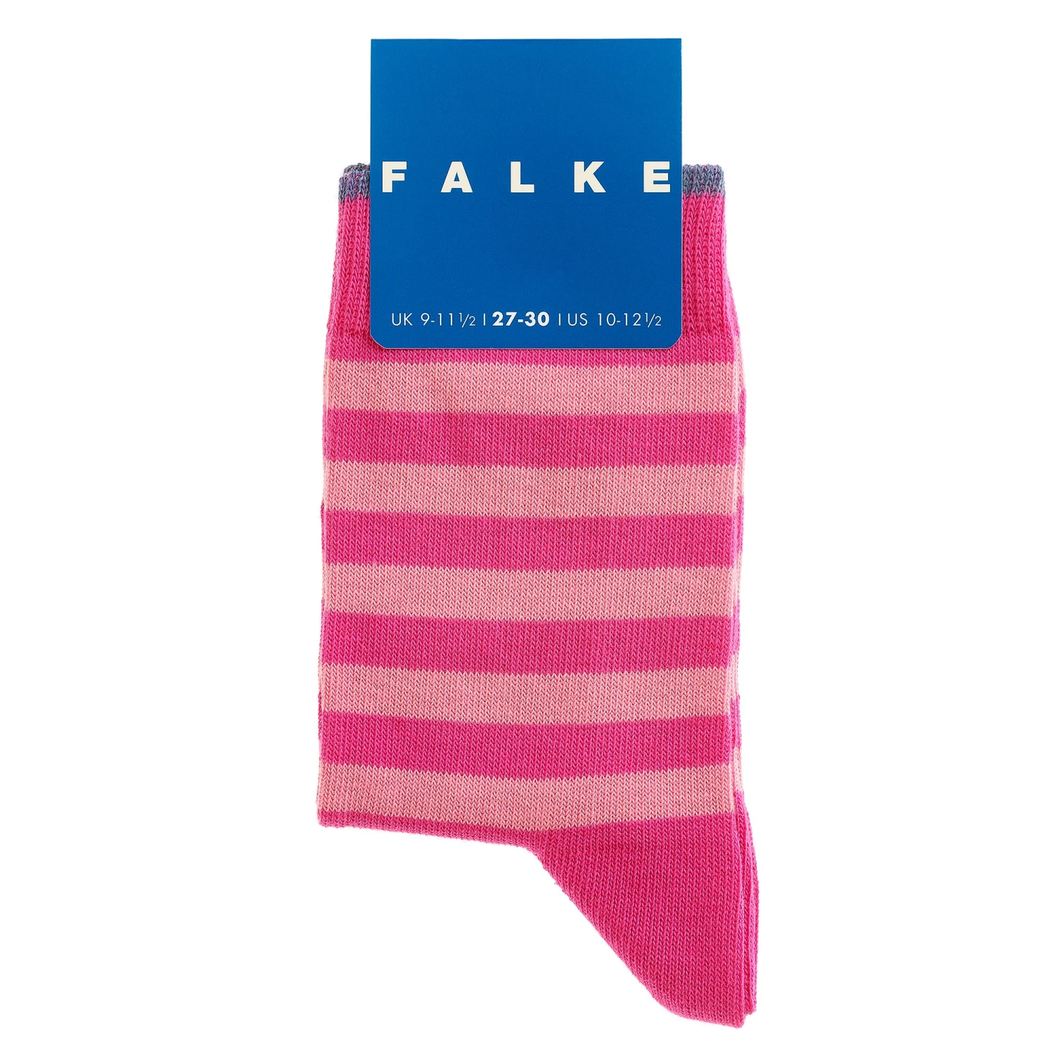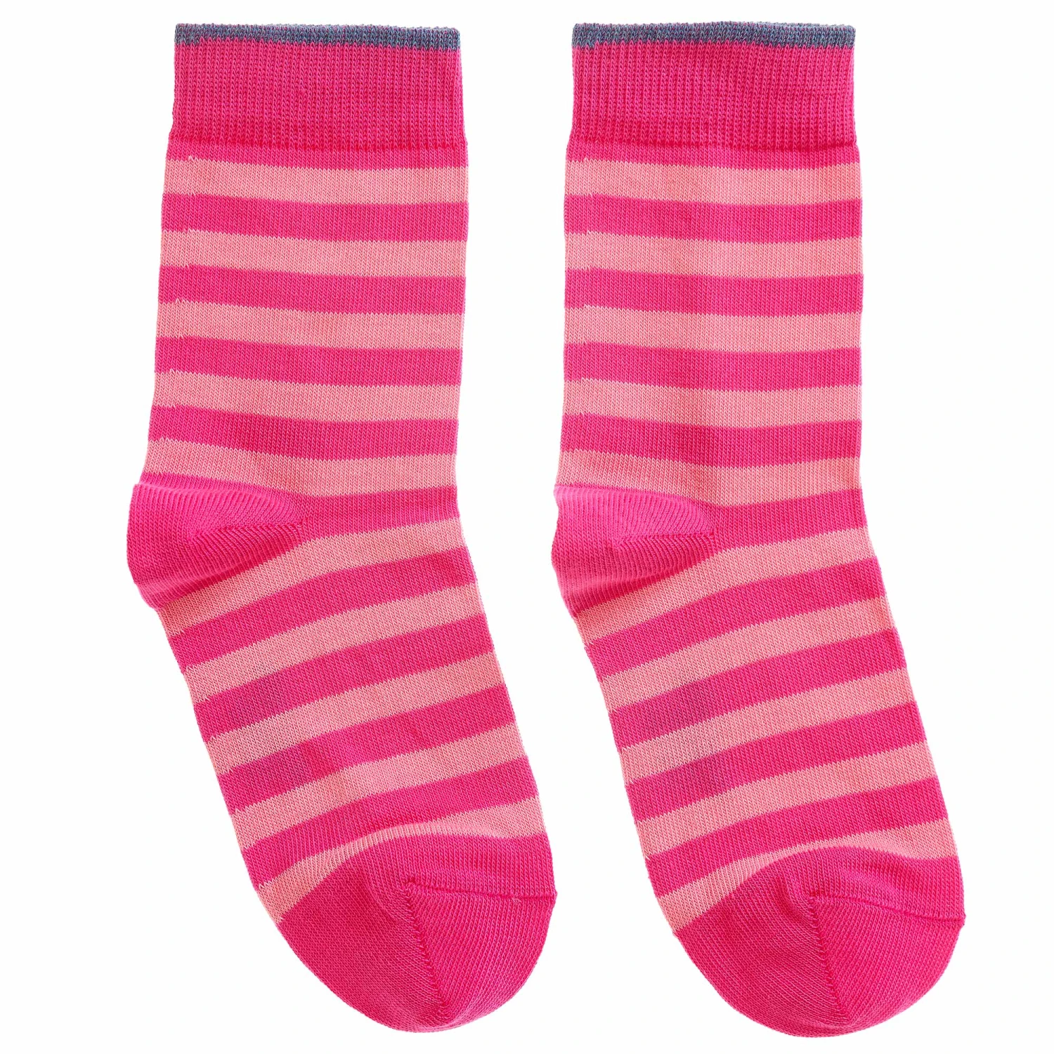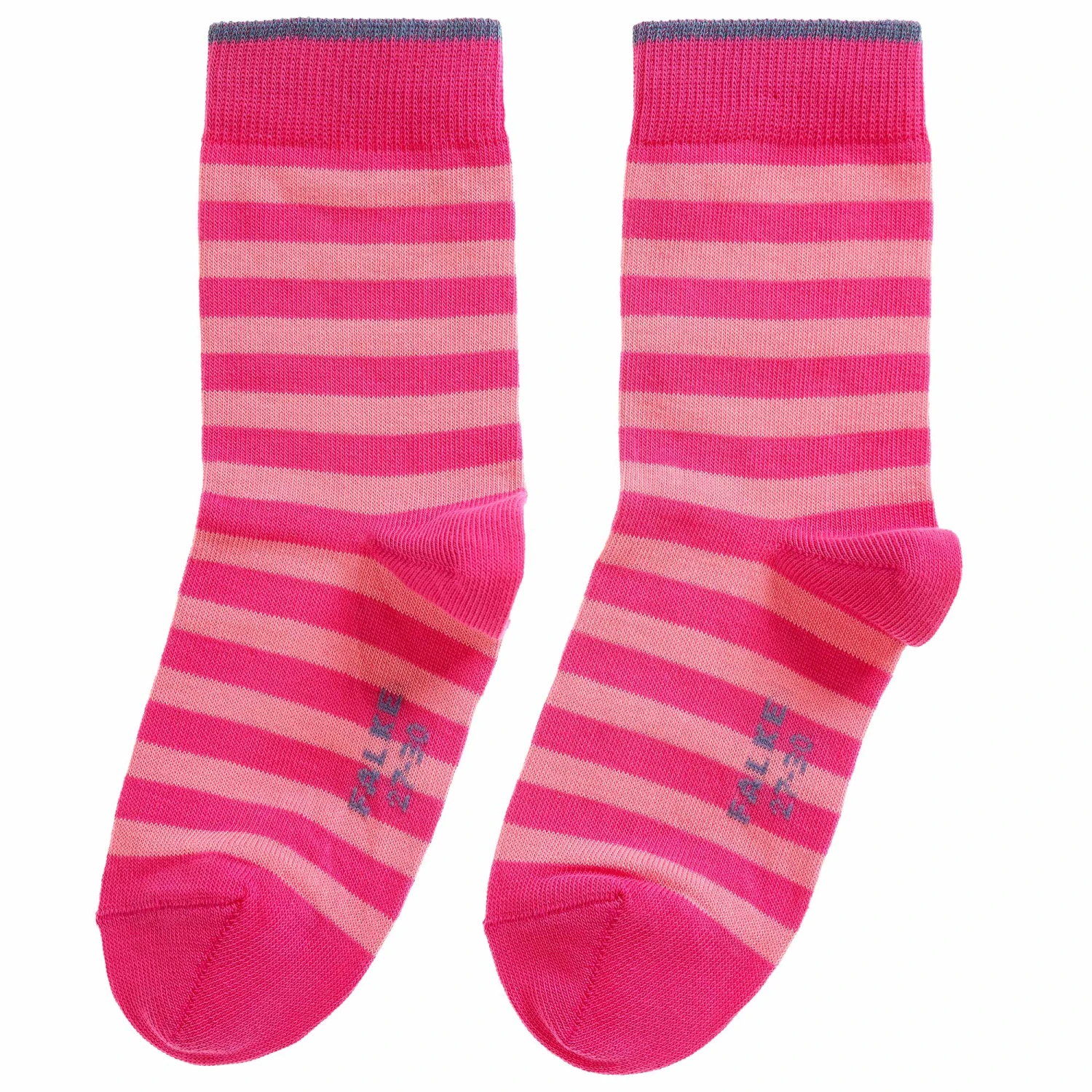 A pair of bright and pale pink striped ankle socks for girls by Falke. Made from a soft, stretchy cotton blend, they have gently ribbed cuffs and reinforced stress zones for added durability.
