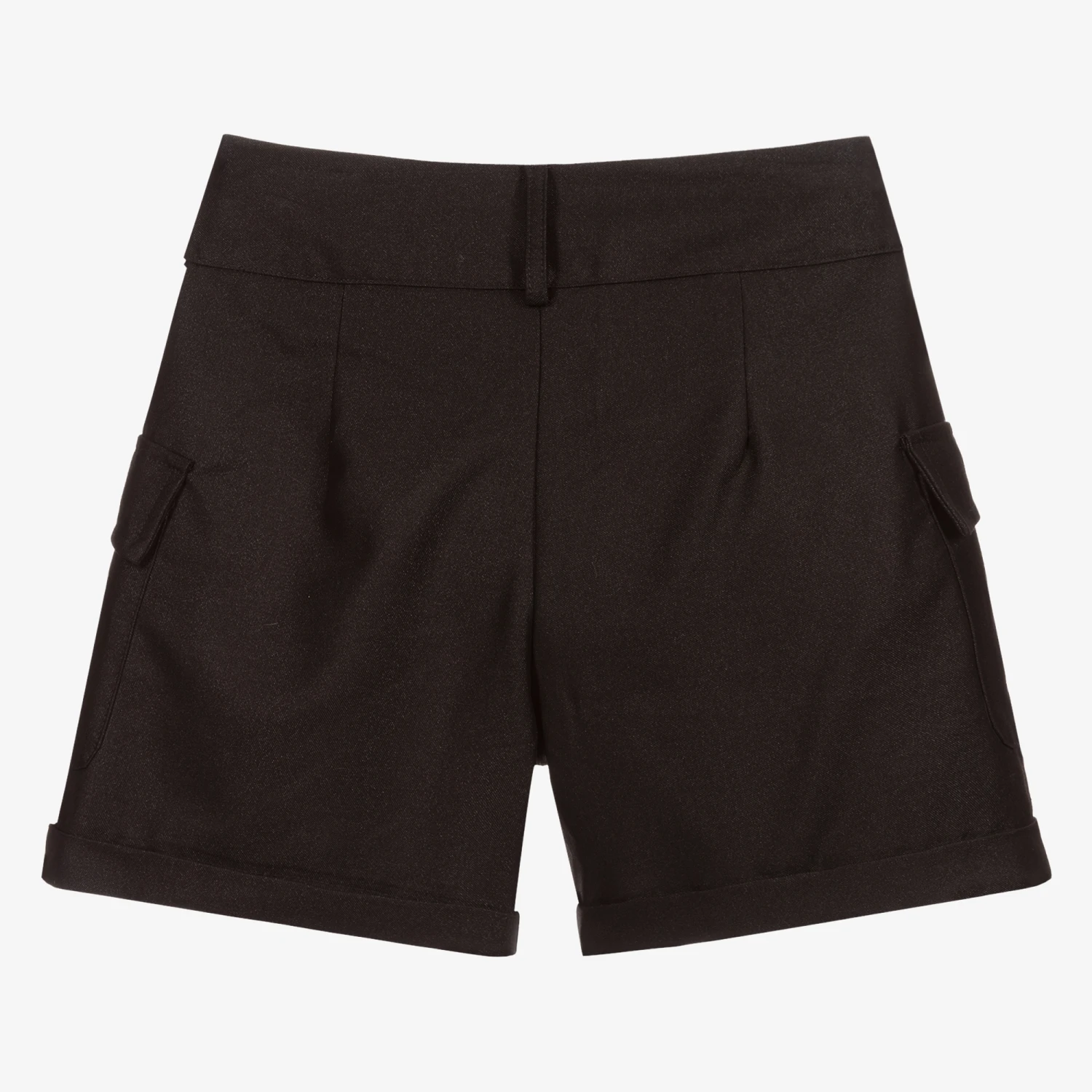 A smart black pair of shorts for girls by Fun & Fun. Smartly tailored, they fasten with a concealed zip and clips. They have pockets at the sides and belt loops.