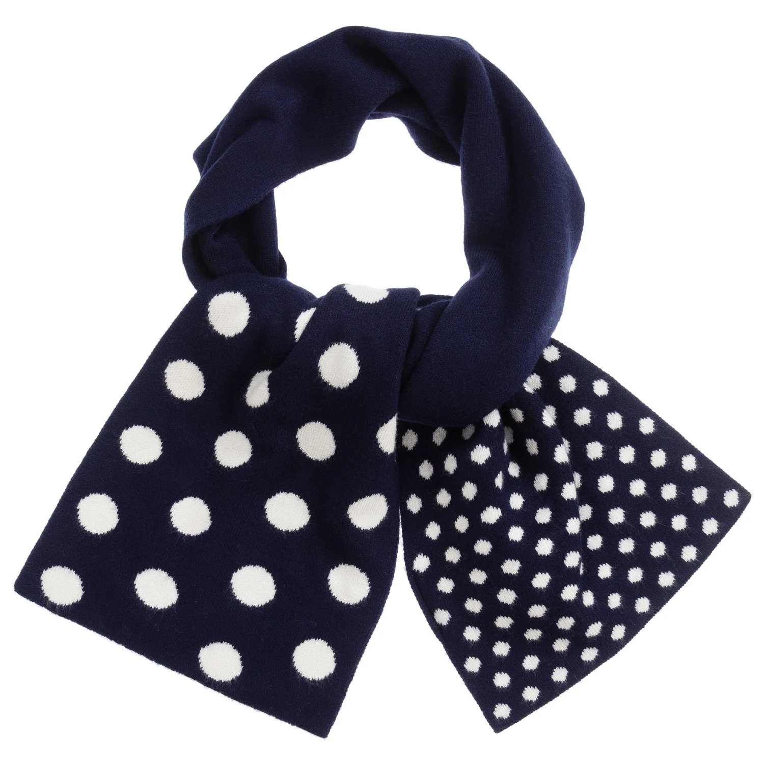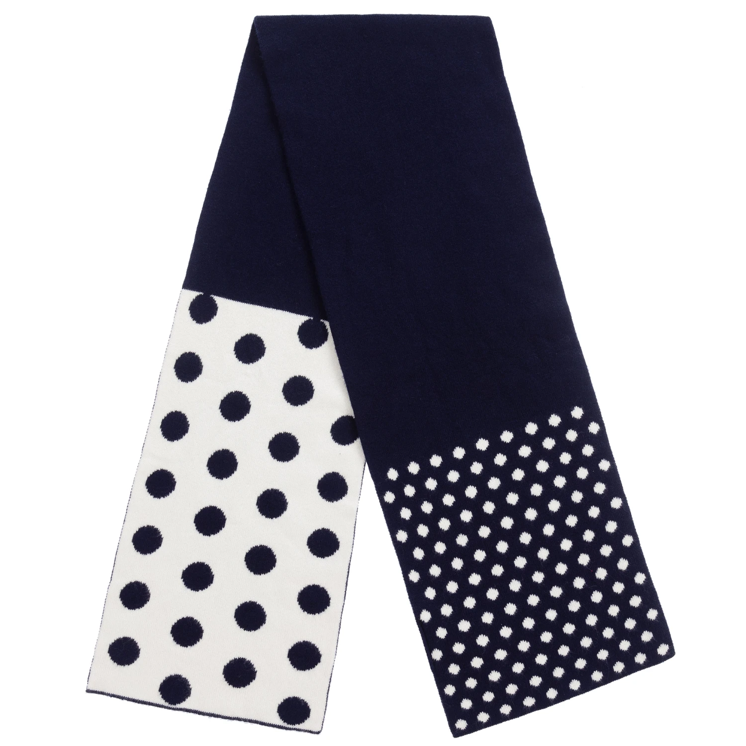 Navy blue and white spotted scarf for girls by Italian brand iDO Baby. It is knitted in super soft, mid-weight viscose.