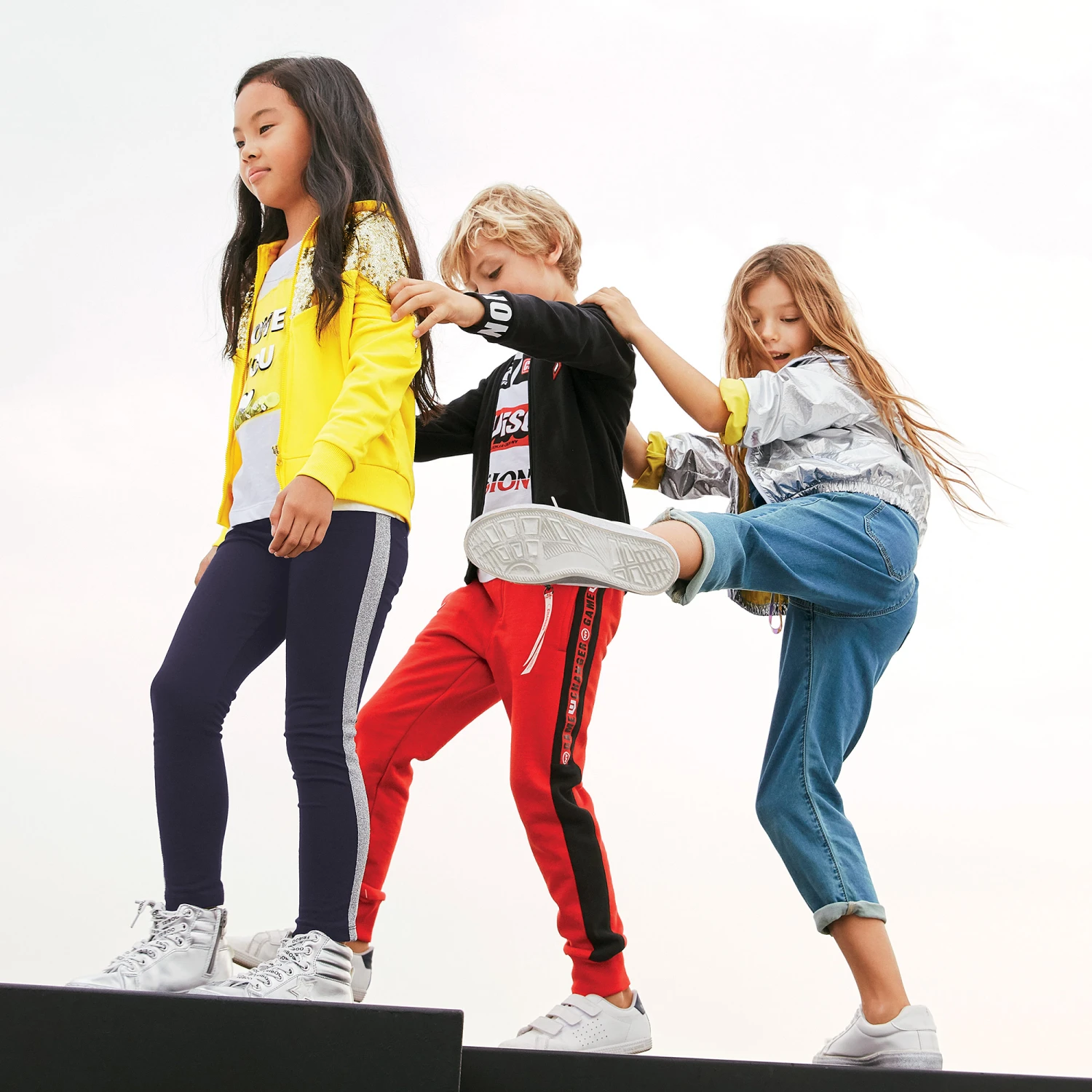 Navy blue & silver trousers for girls by iDO Junior. Made in soft, comfortable viscose jersey, these smart trousers for girls have sparkling sequin stripes on the side seams. They have a zip and button fastening and useful side pockets.Â