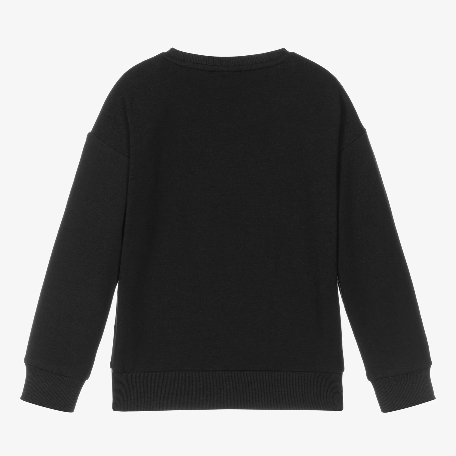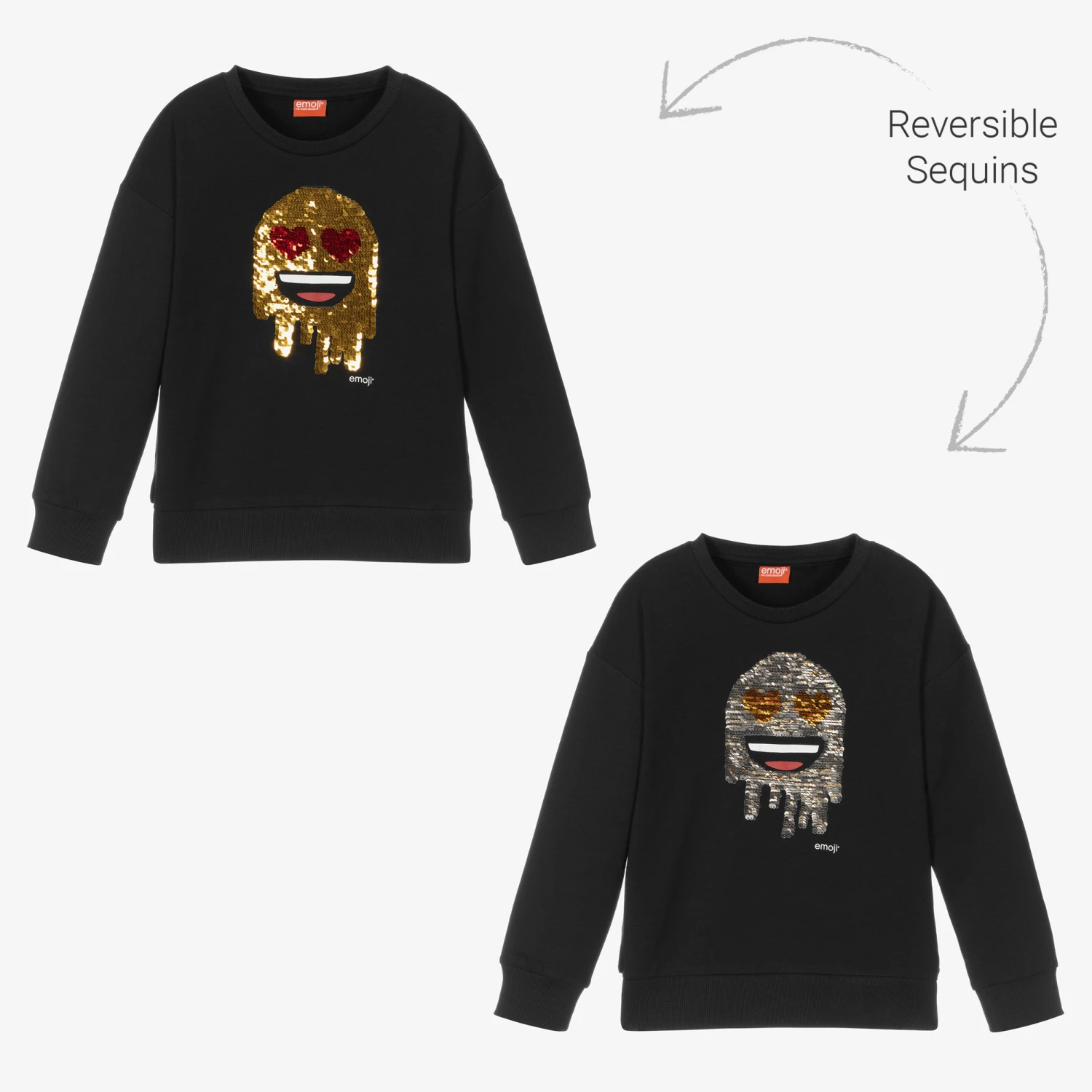 Girls black cotton jersey sweatshirt by iDO Junior, featuring a fun heart eyes Emoji® reversible sequin appliqué.