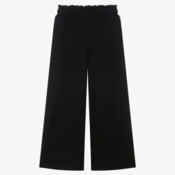 Black wide-leg trousers for girls by iDO Junior, made in soft and stretchy cotton jersey. A great addition to her casual wardrobe, they have an elasticated waist for comfort and easy pull-on.