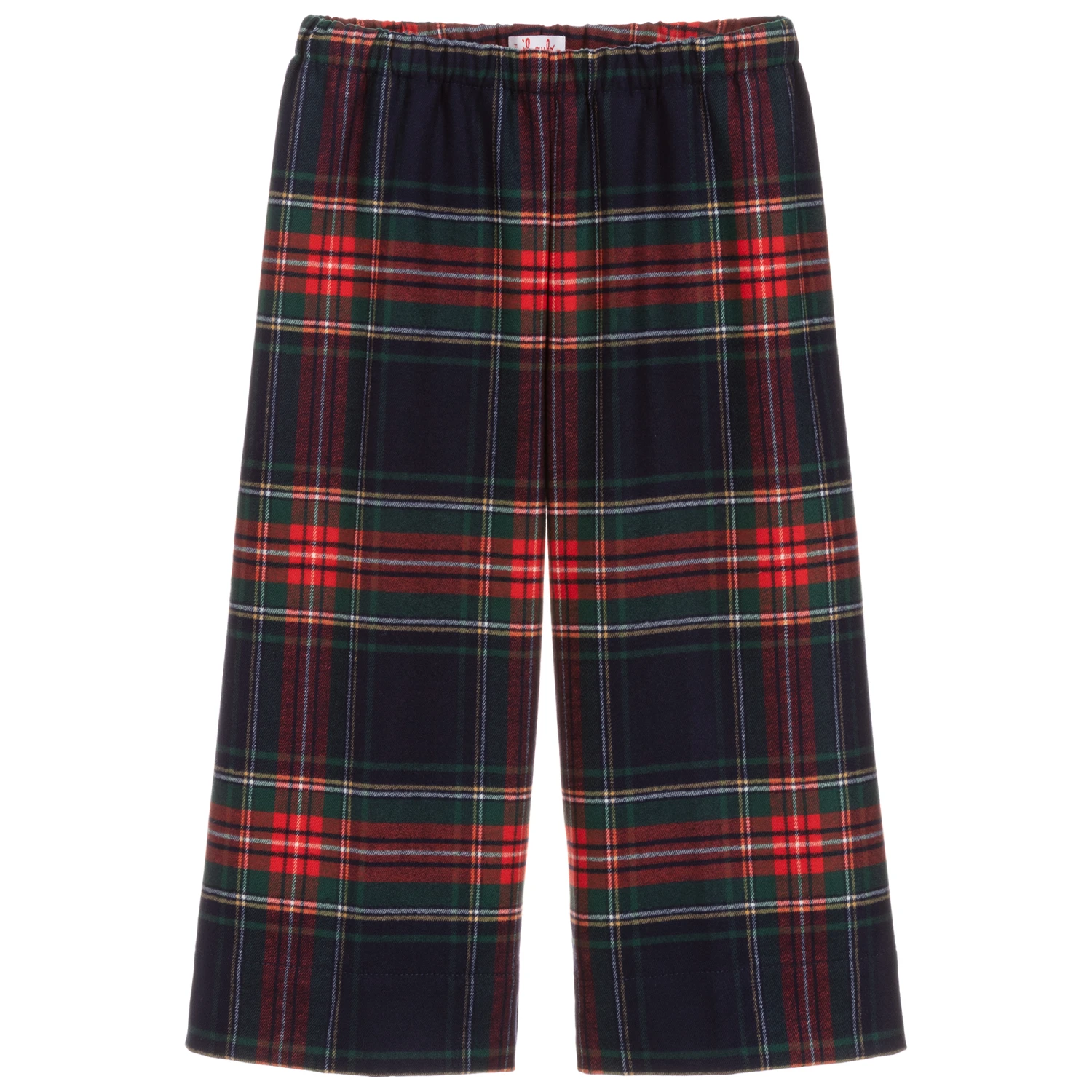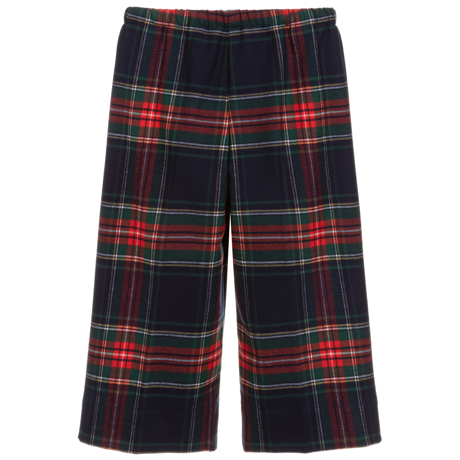 Made in a super soft viscose blend, these red, green and navy blue tartan culottes are by Il Gufo. Lightweight and comfortable, they have an elasticated waistband.