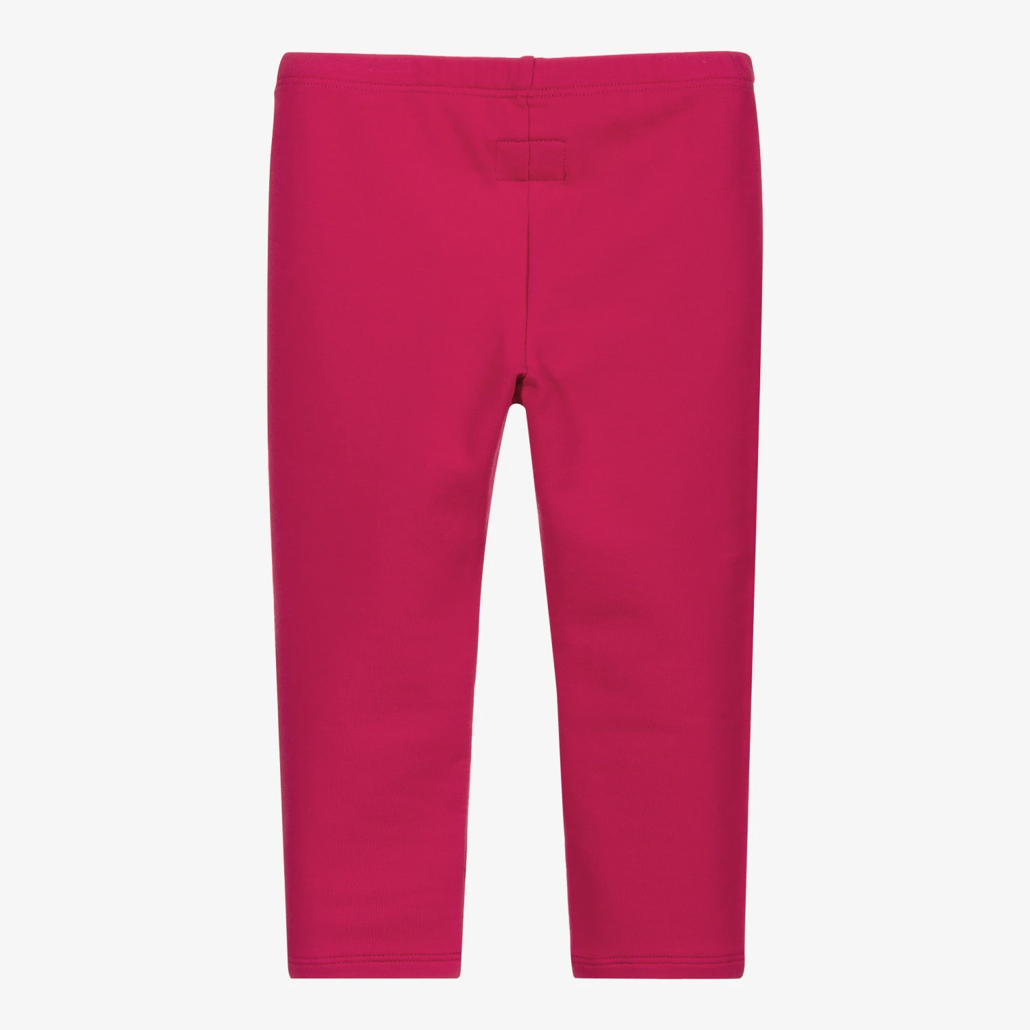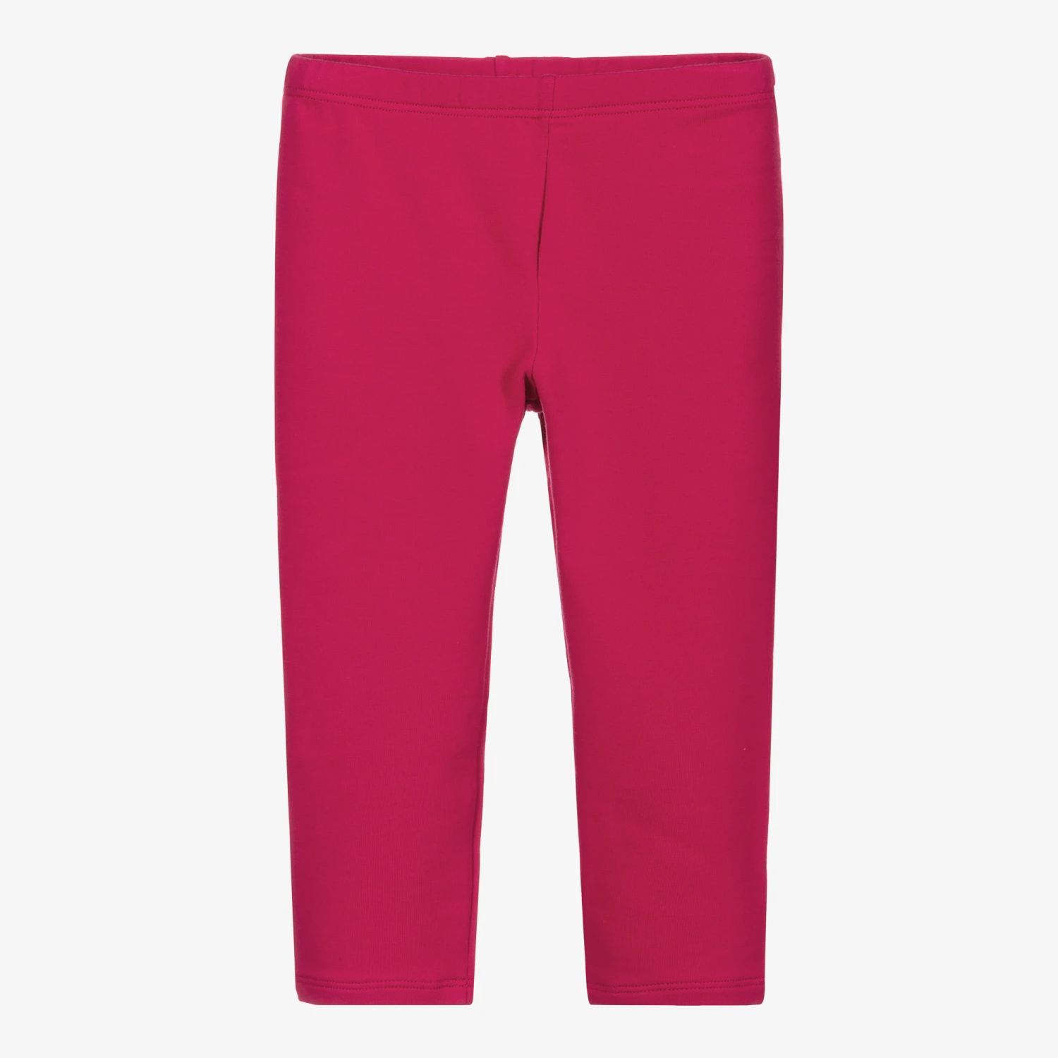 Fuchsia pink leggings for girls by luxury Italian brand Il Gufo, made in soft cotton jersey. They have an elasticated waistband and are full length.