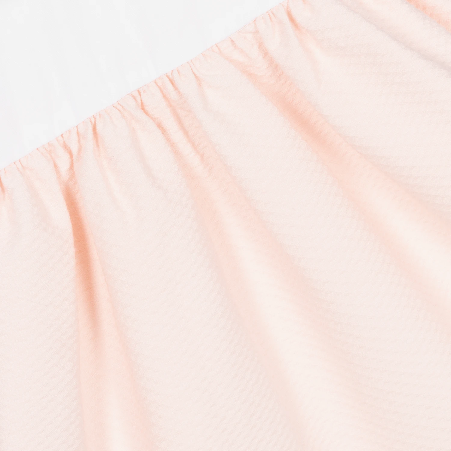 - Skirt: 74% cotton, 26% polyester (woven, textured)