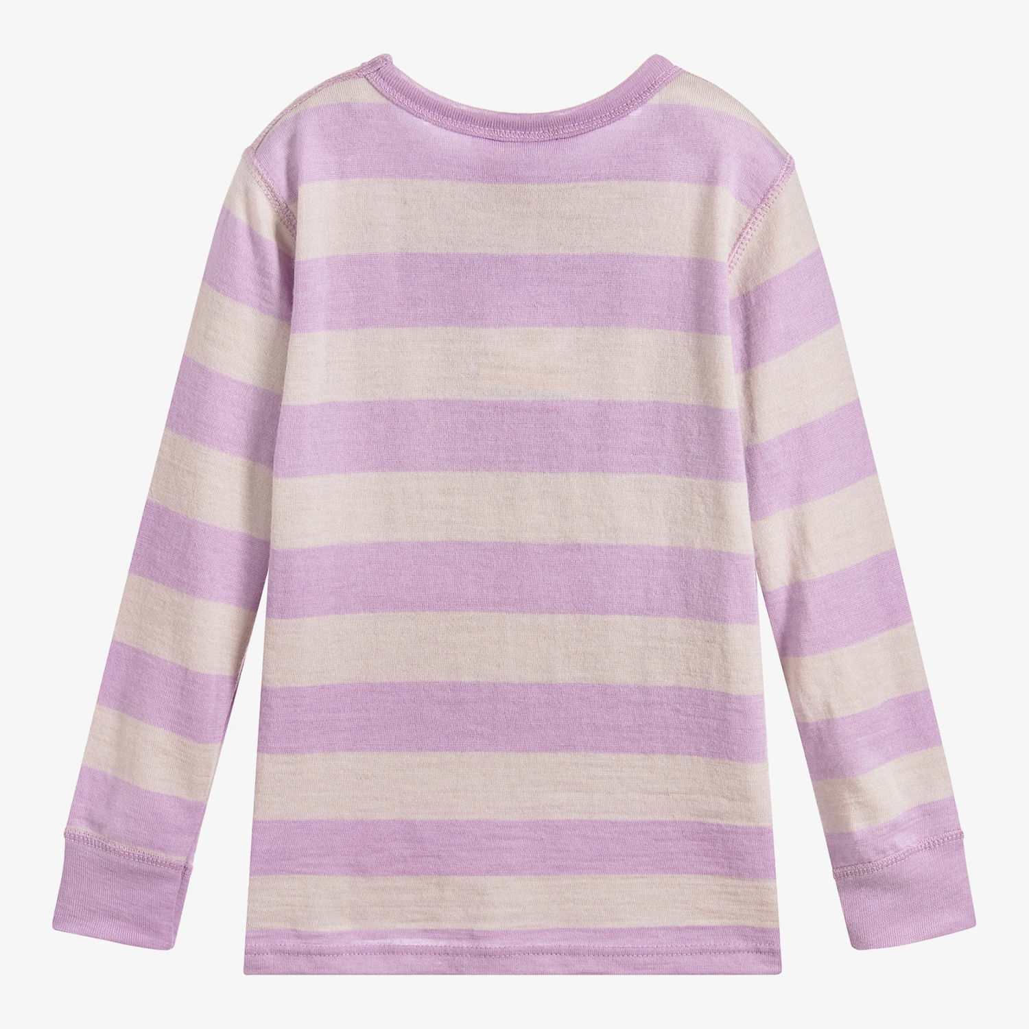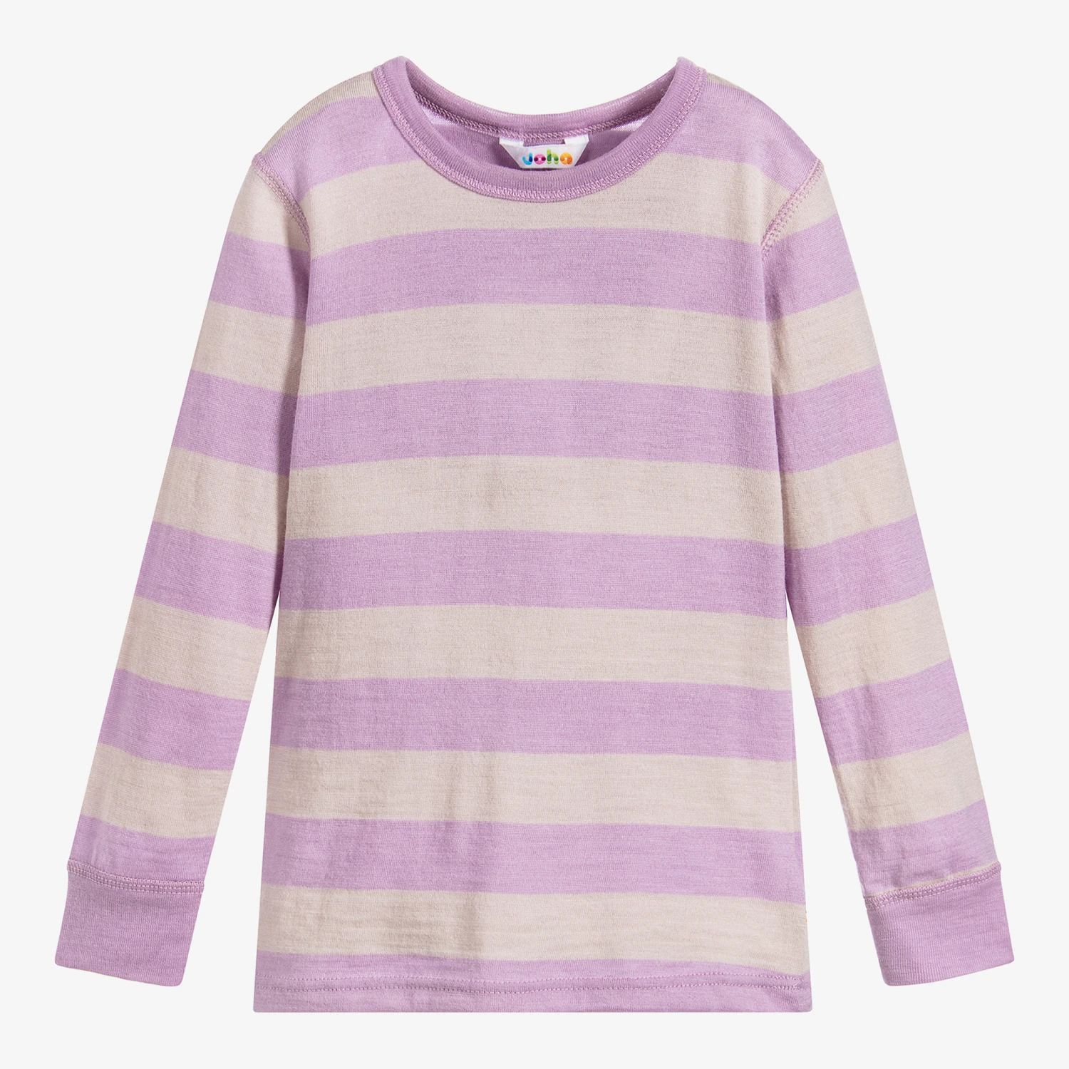 Lilac and grey striped thermal top for girls by Joha, made in a super soft and stretchy Merino wool.