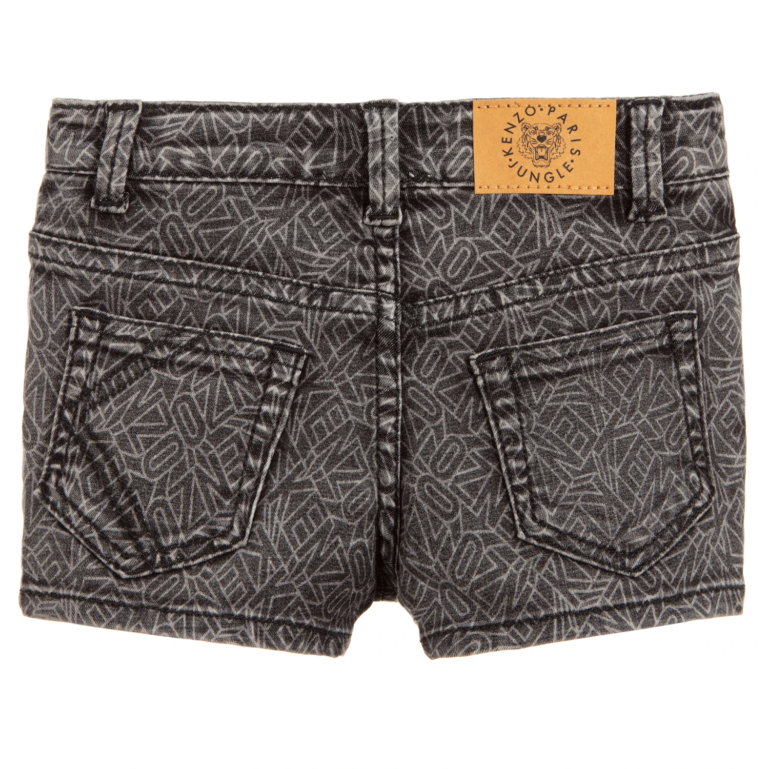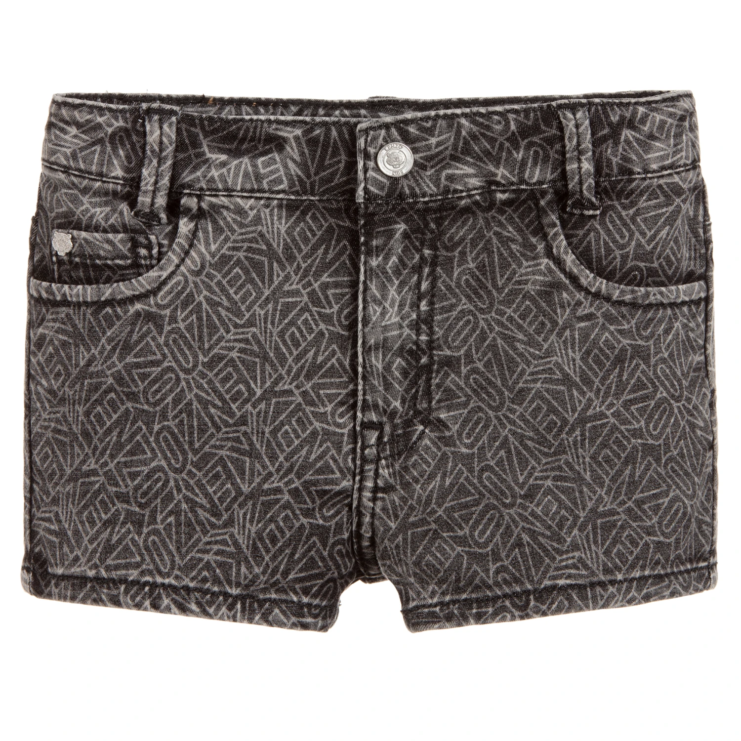 Girls grey shorts from Kenzo Kids, with a logo print. They are made in soft and stretchy cotton denim, with a repeat logo pattern.