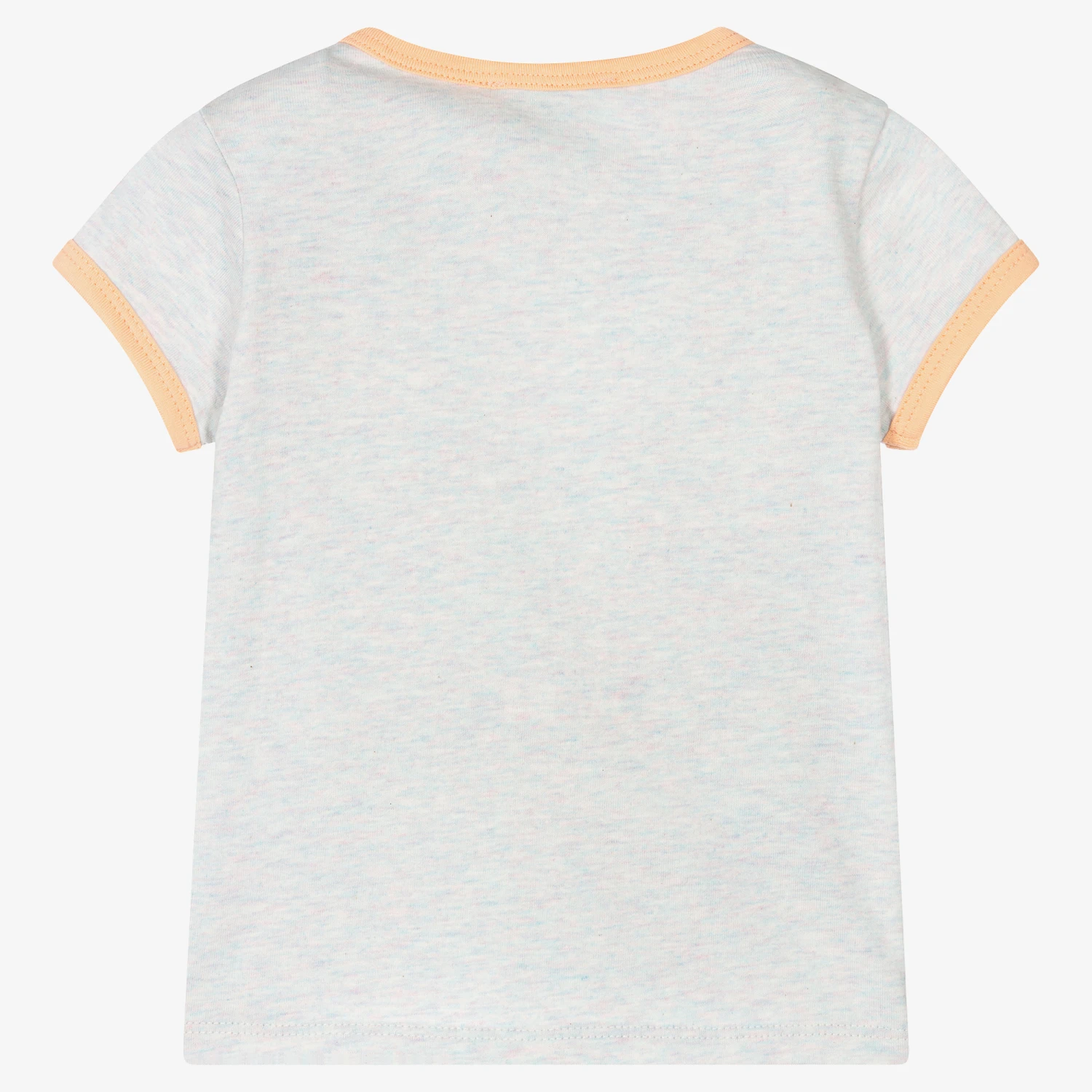 From KENZO KIDS, this grey marl T-shirt for little girls is made in soft cotton jersey. With a some pink and orange running through the fabric, this cool top has Japanese style blue tiger prints on the front and orange logo embroidery on the chest. There are pale orange trims and matching logo poppers on one shoulder.