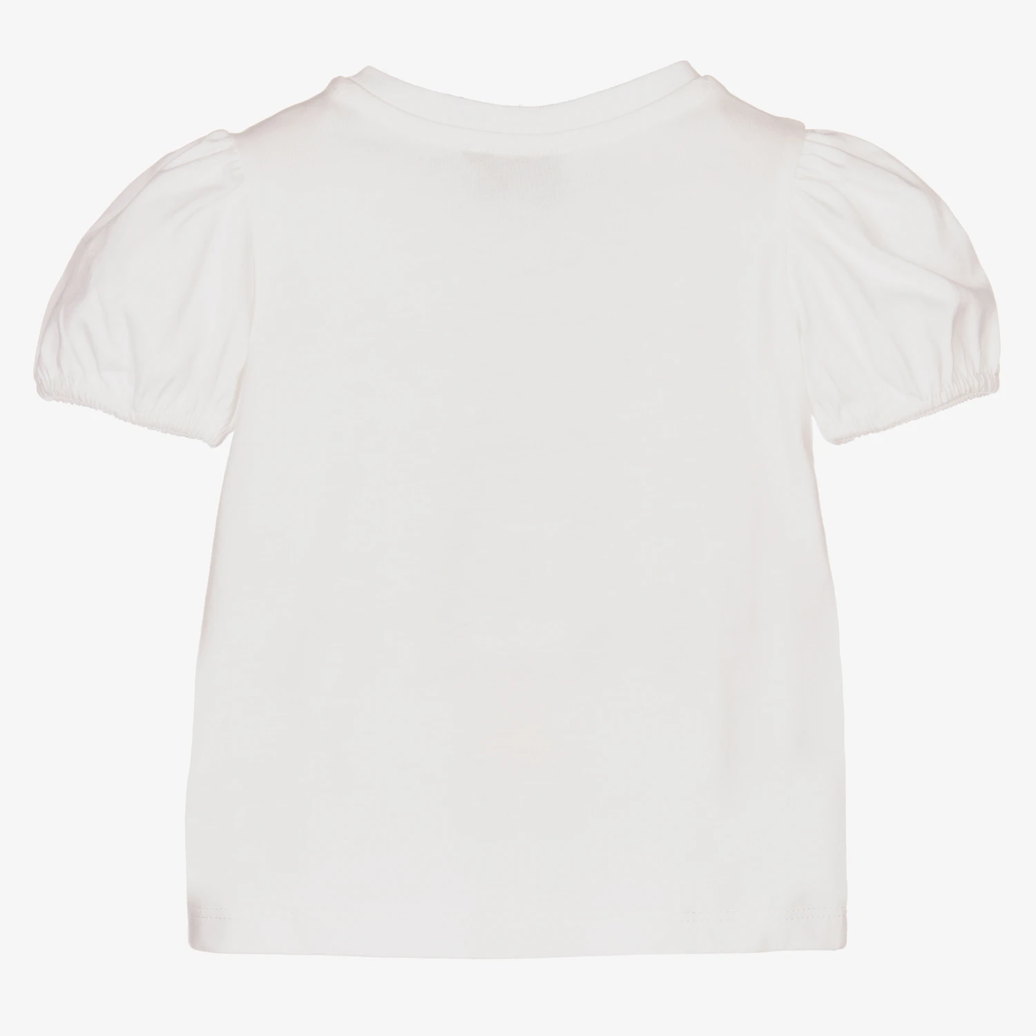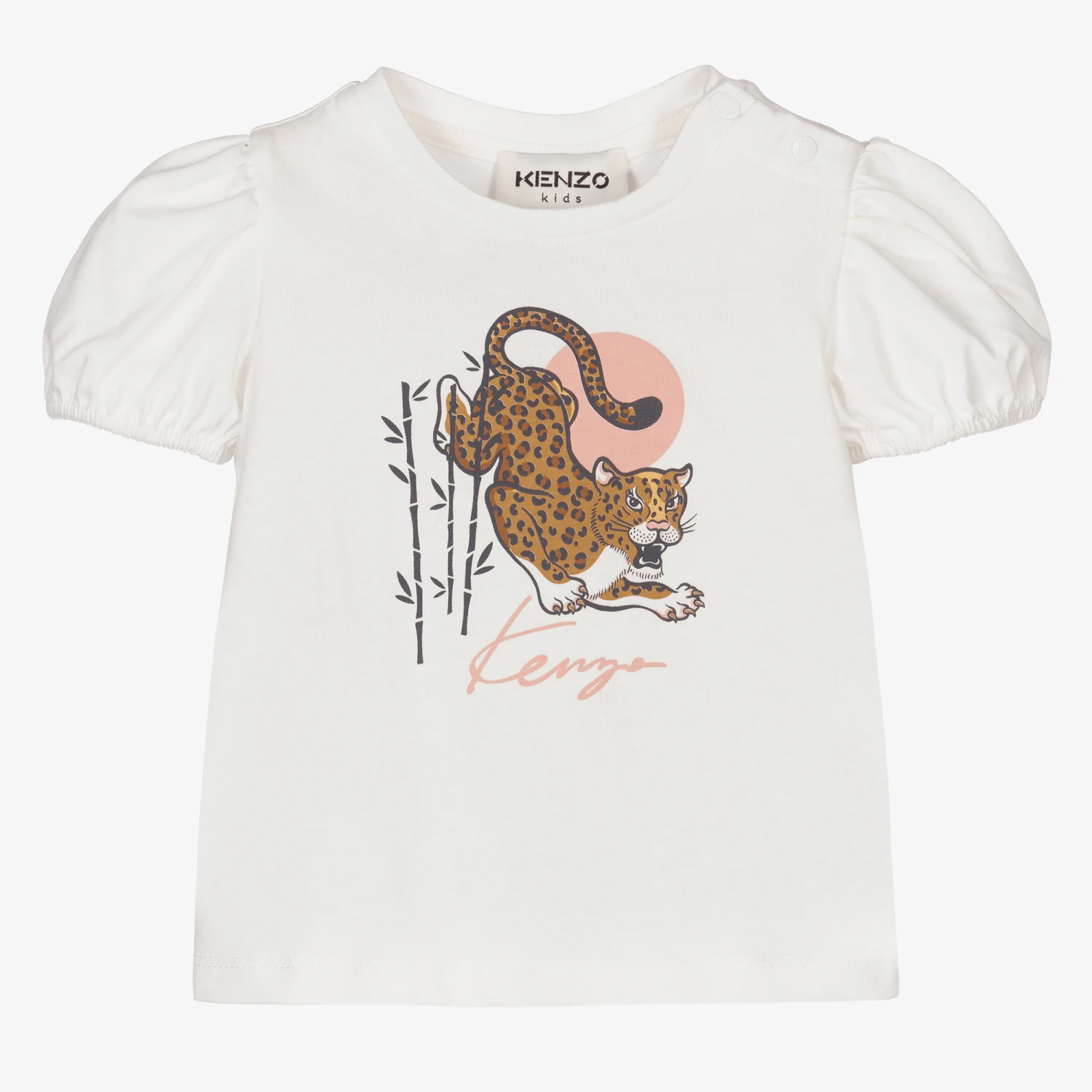 Lovely ivory T-shirt for little girls by KENZO KIDS. Made in soft organic cotton jersey, it has a Pop Tiger logo print on the chest, and sweet puffed sleeves.