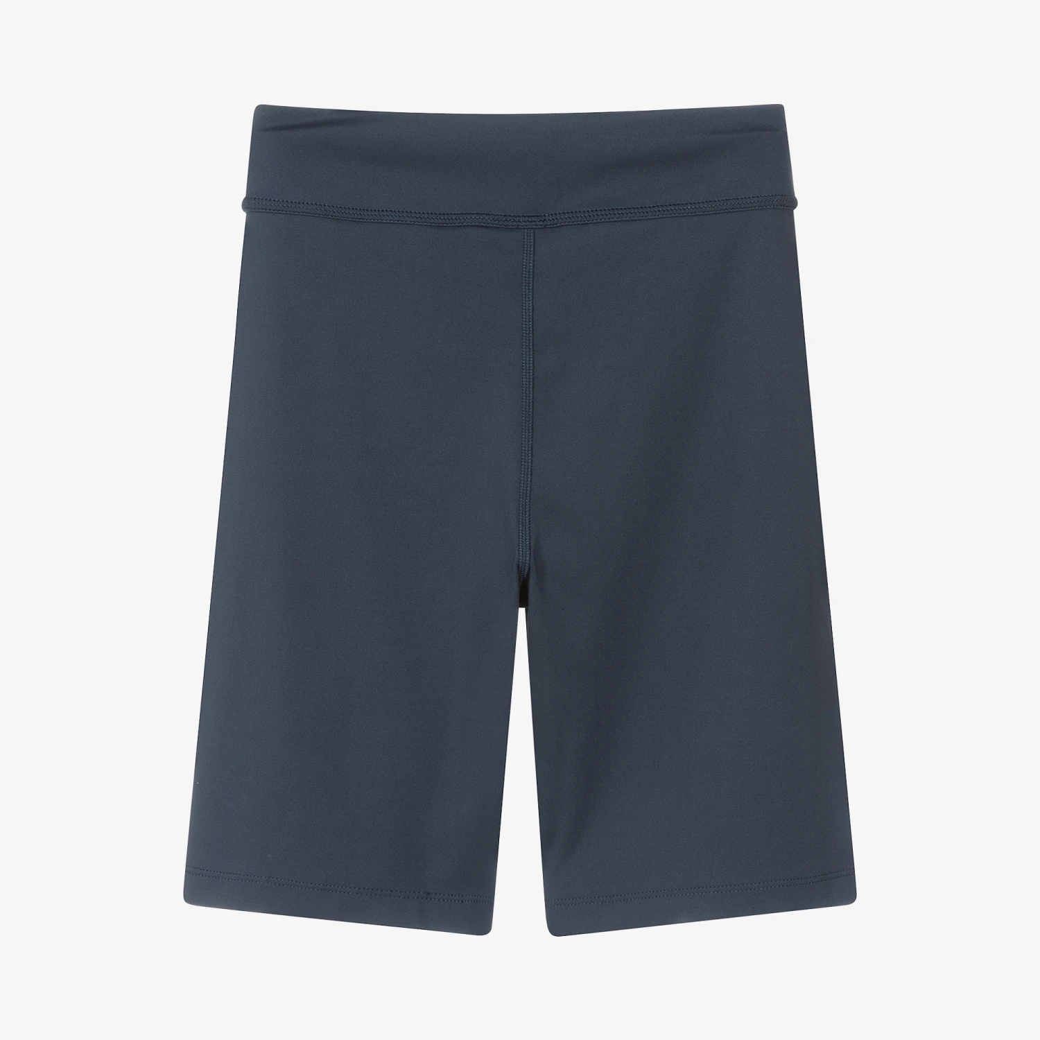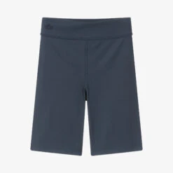 Sporty and comfortable, blue-grey cycling shorts for girls by French label Lacoste. Silky smooth and stretchy, they are made in recycled nylon with a rubberised crocodile logo on the gently elasticated waistband for a signature look. They are stylish and comfy to wear for