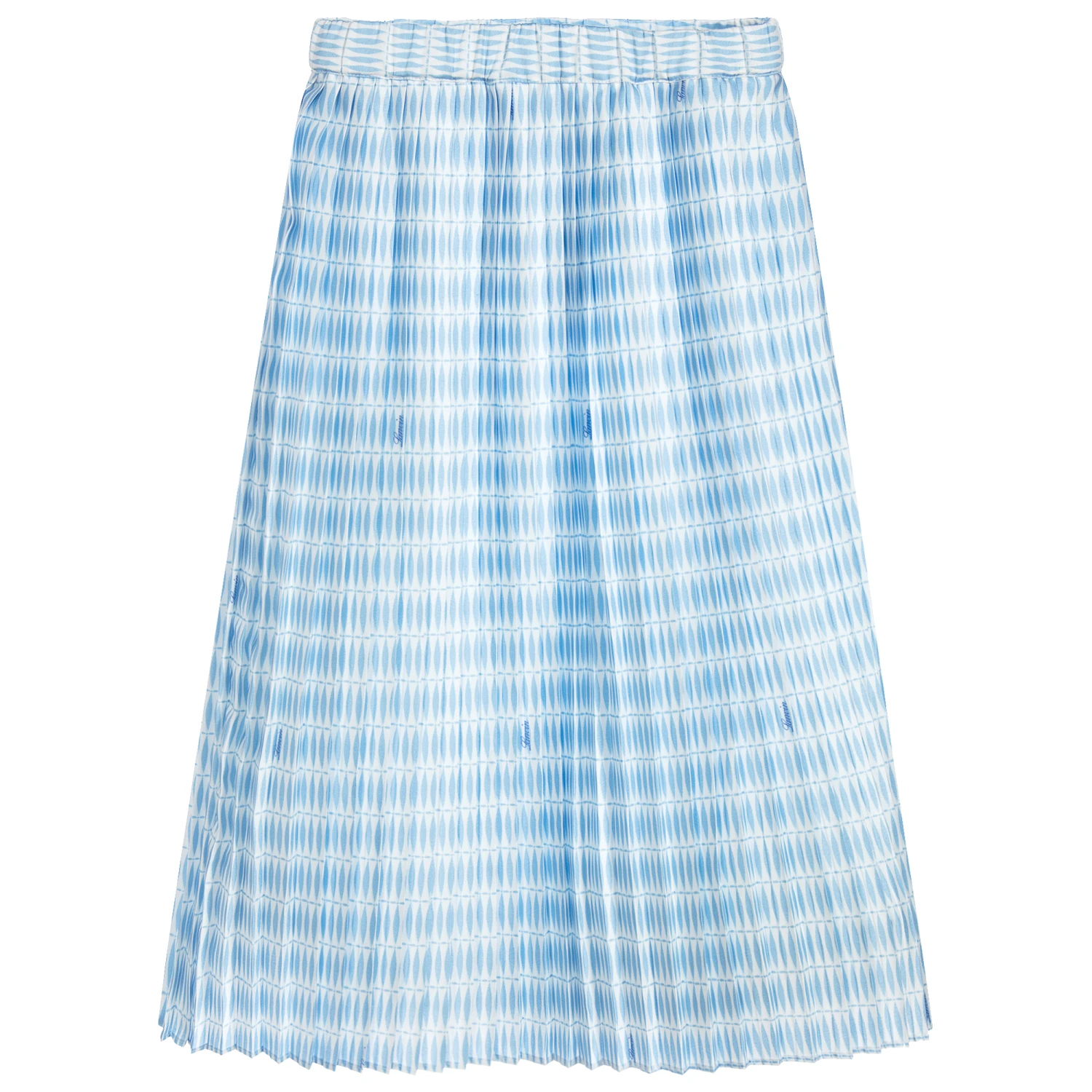 By luxury French brand, Lanvin, this long-length pleated skirt is a grown-up design for girls. Its waistband is elasticated and the crêpe de chine fabric has concertina pleats, with a geometric graphic print.