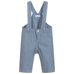 Light blue dungarees for baby boys and girls by Laranjinha. They are fully lined and slightly padded, with adjustable shoulder straps.