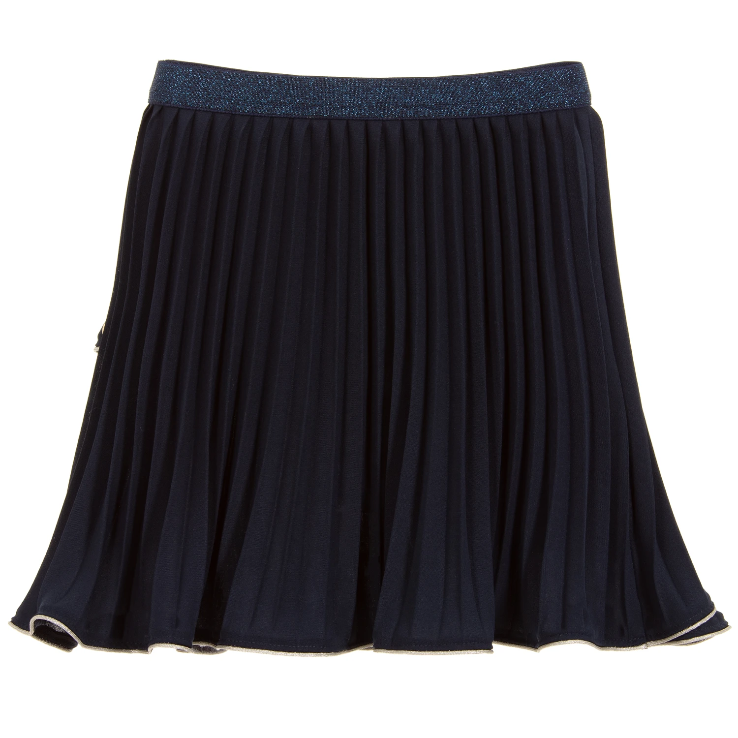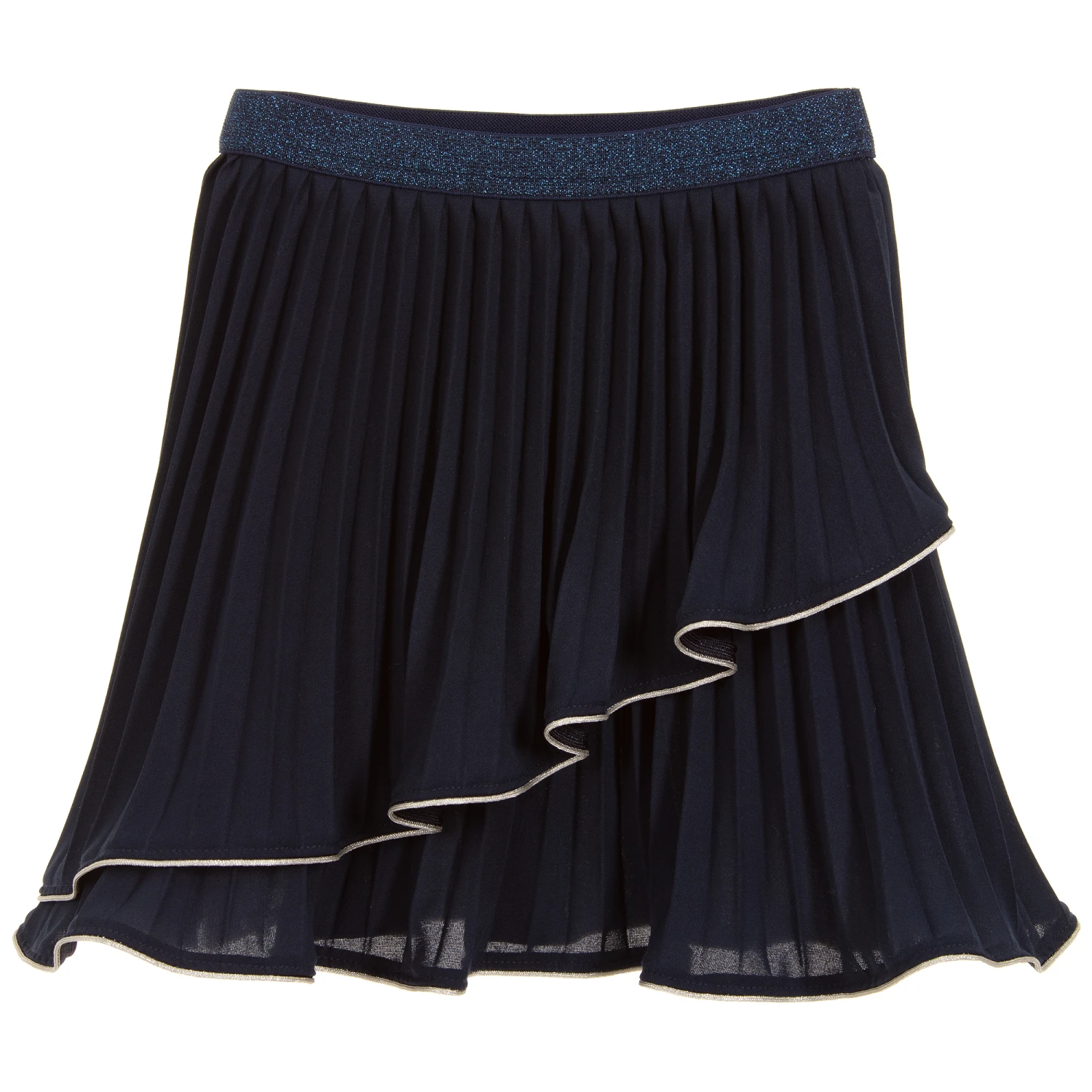 Girls layered pleated skirt with sparkly gold trim, by Lili Gaufrette. This stylish skirt has a soft, lightweight cotton-like feel and has a glittery, elasticated waistband.
