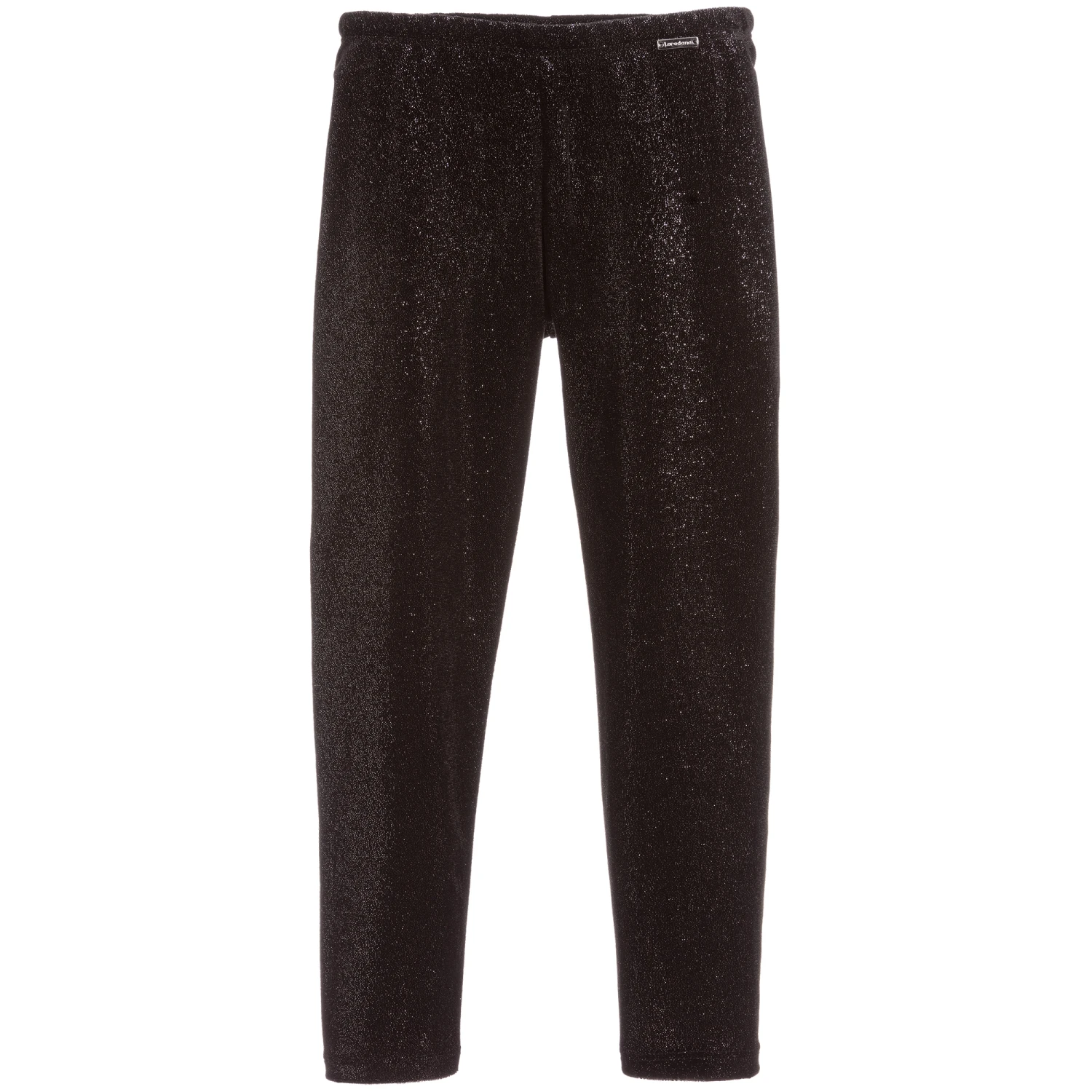 Girls black sparkly jersey leggings by Loredana, made in soft velour jersey.