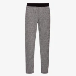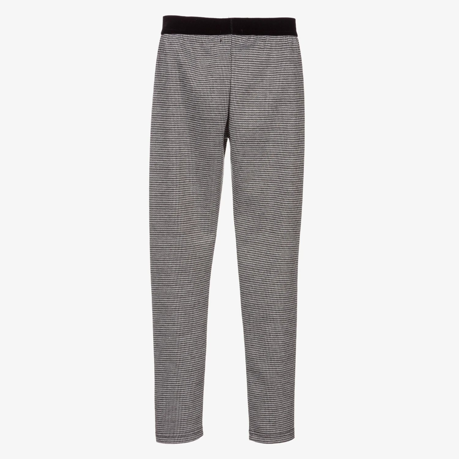 Black and white jersey leggings for girls by Mayoral, with a small houndstooth pattern. Beautifully soft and lightweight, they have a velvet-look elasticated waistband.