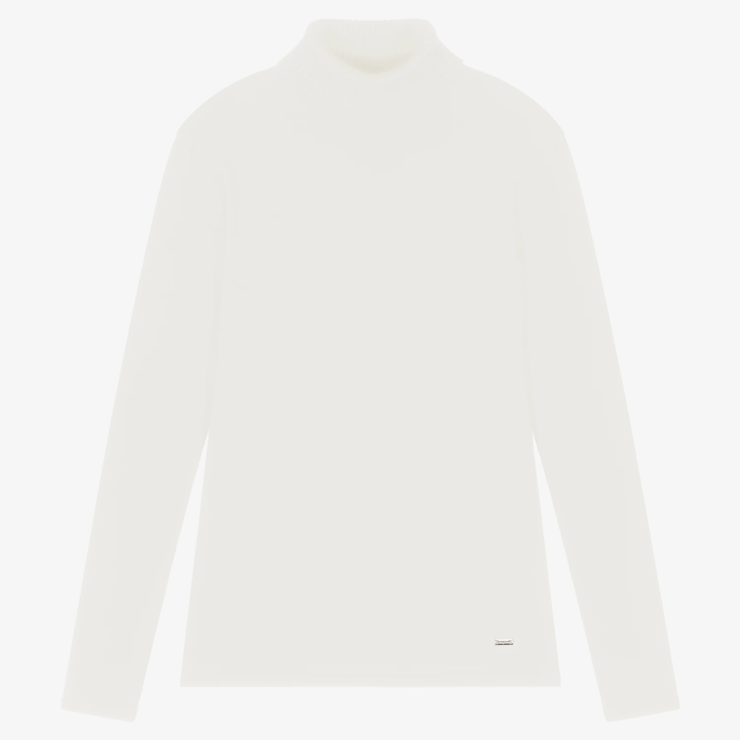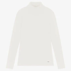 Ivory roll neck sweater for older girls by Mayoral, knitted in a soft cotton blend. It has a ribbed neck and the brand’s silver logo tab by the hemline. This garment contains sustainable cotton.