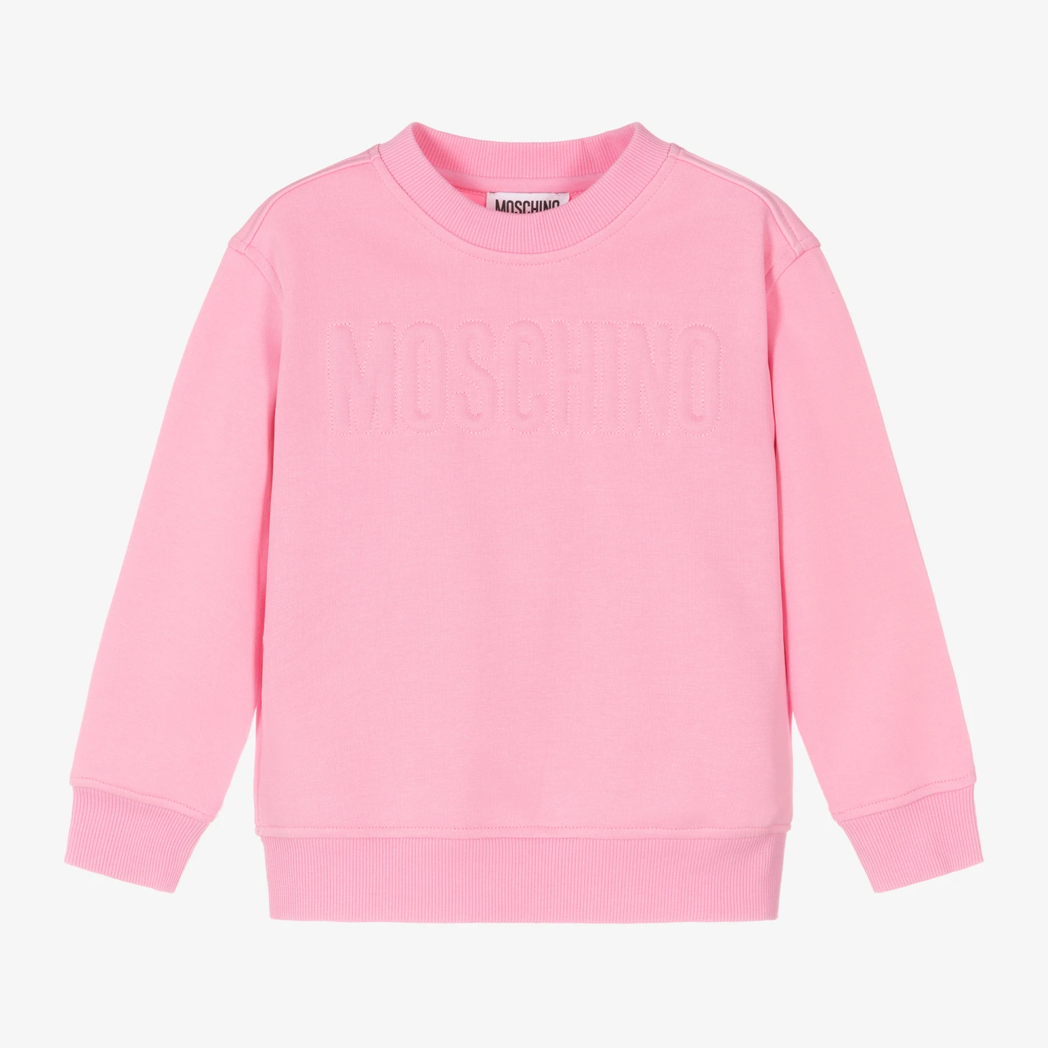 A cotton-rich sweatshirt for girls by Moschino Kid-Teen, in a lovely shade of light pink. It is made in super-soft, mid-weight jersey, with a raised logo bordered by embroidery on the front for instant brand awareness.