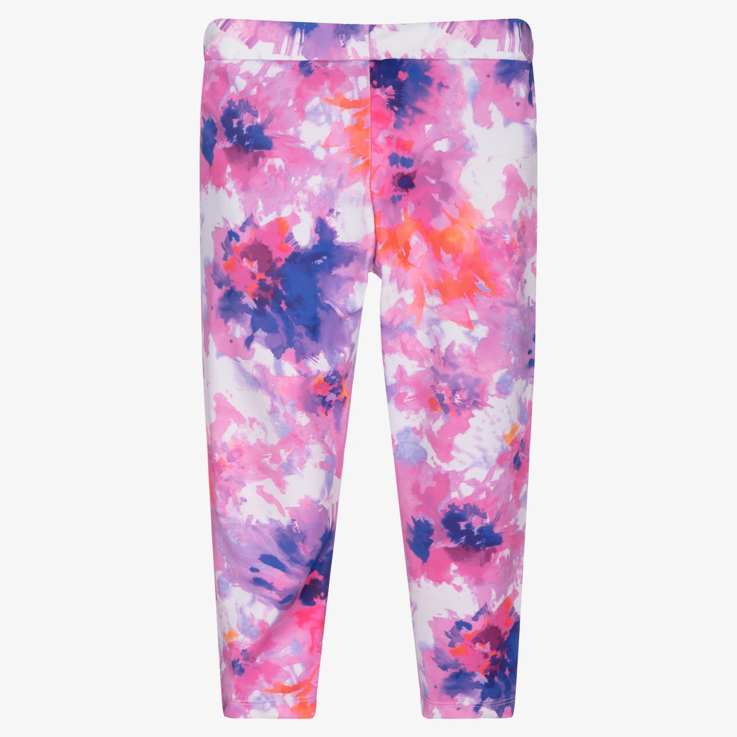 Pink and purple leggings for girls, by MSGM. Made in silky, stretchy lycra, it has an elasticated waist for comfort, and it has a white logo print on the front.
