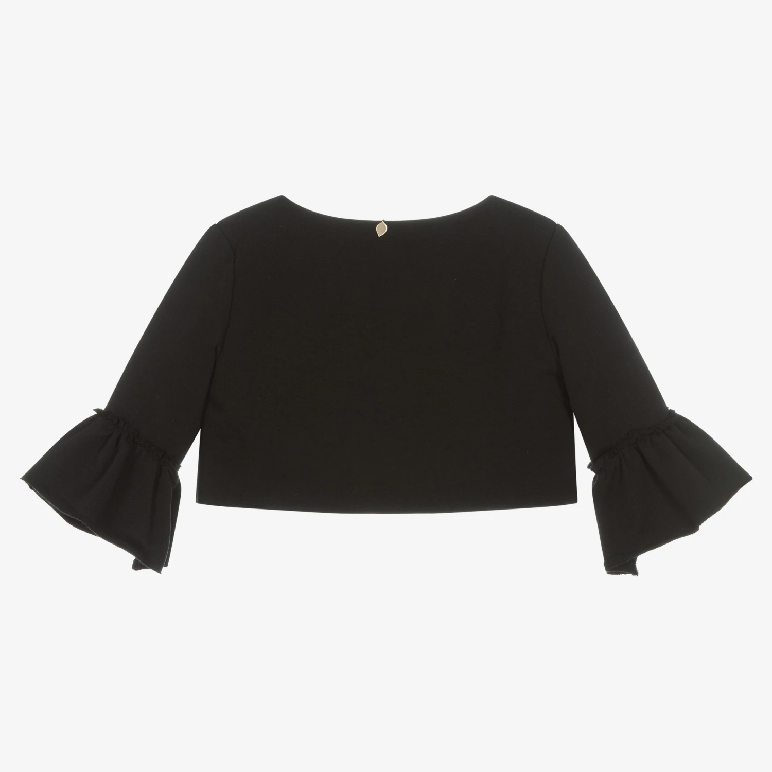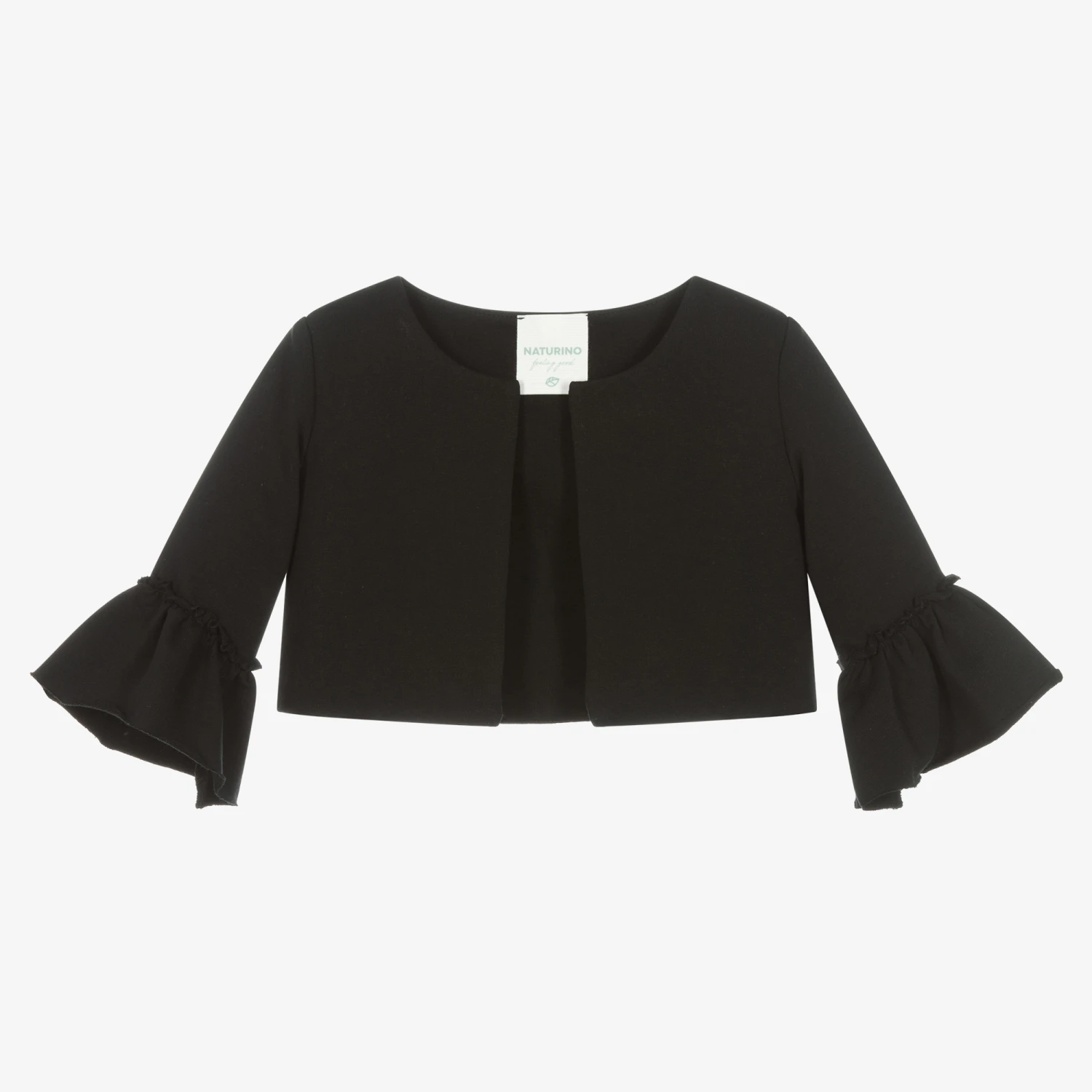 Black cardigan for girls by Naturino, with pretty flounce sleeves. It is made in double layer of soft cotton jersey and has a stylish open front. There are raw-edged seams on the cuffs for a modern finish.