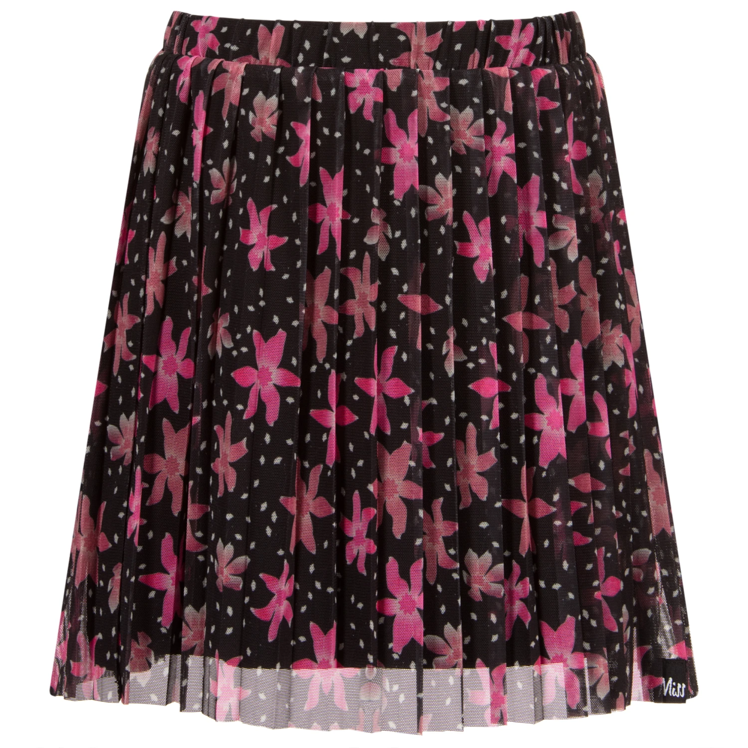Lovely black pleated skirt for girls by NIK&NIK, in a pink floral print. Elasticated around the waist, it is made in a soft and stretchy mesh with a black, soft jersey lining.