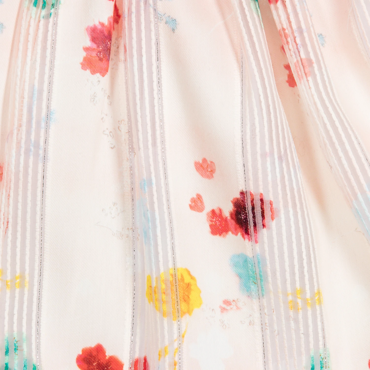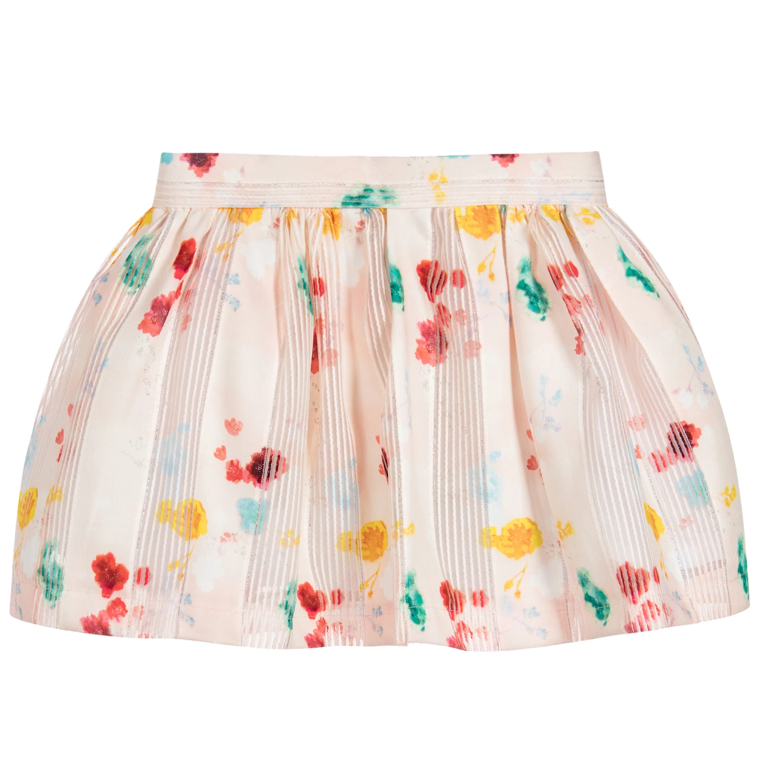 Spring has sprung in this peach pink, floral print skirt from No Added Sugar. With a comfortable elasticated waistband and silver metallic stripe, this skater styled skirt can take you from the playground to the party without a fuss.