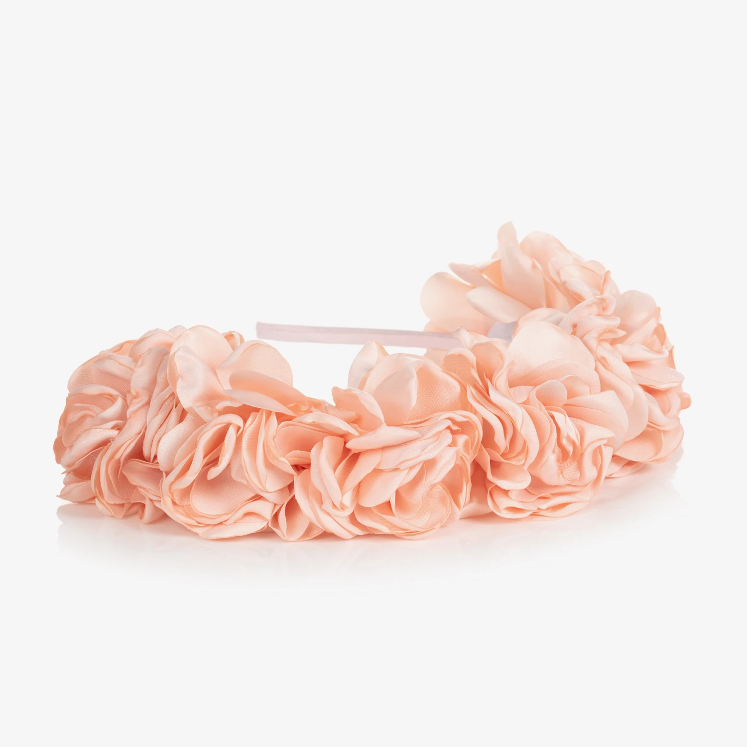 Exclusive to Childrensalon, a gorgeous pale pink flower hairband for girls by Portuguese brand Patachou. The satin-covered slim band is decorated with a row of lovely fabric flowers, giving it a romantic and beautiful finishing touch.