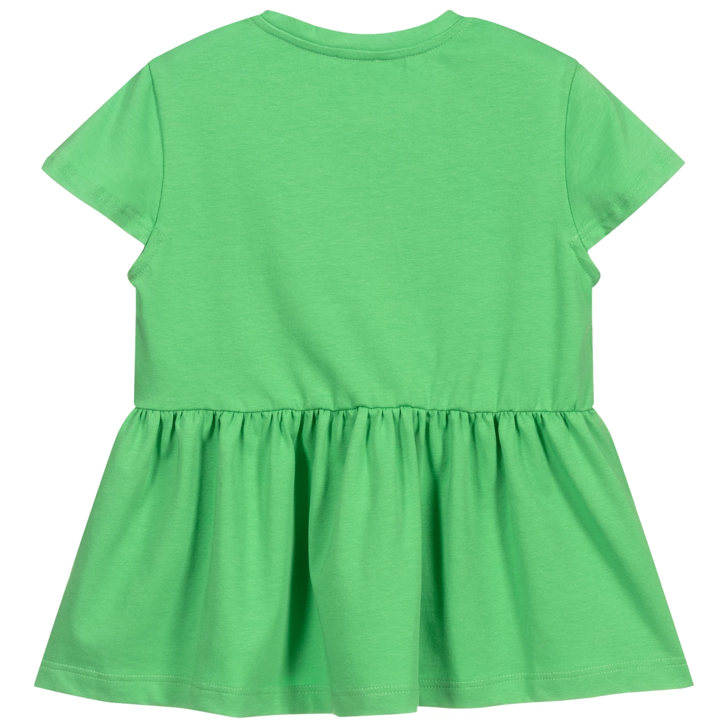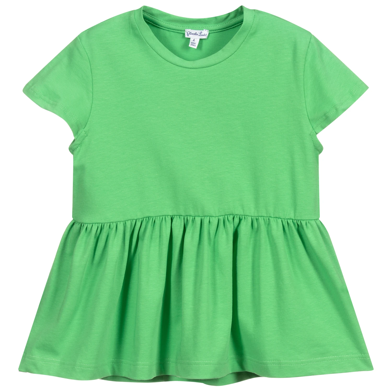 Bright green T-shirt for girls by Italian designer Piccola Ludo. Made in comfortable cotton jersey, it is gathered below the bodice.