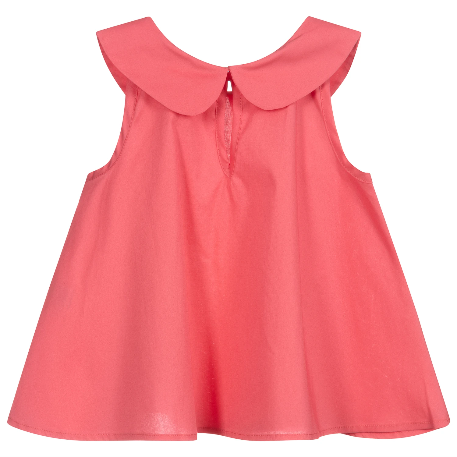 Pink blouse by Italian designer Piccola Ludo, made in lightweight cotton with a slight stretch. It has a wide, flared shape and a keyhole button fastening on the back.