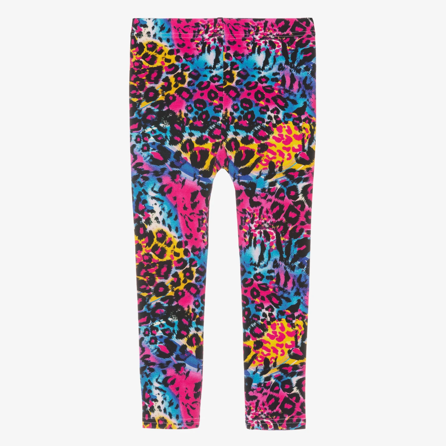 Girls, pink, blue and yellow leggings from Rock Your Baby, with a vibrant leopard print. They are made in stretchy cotton jersey, with an elasticated waistband for a comfortable fit.