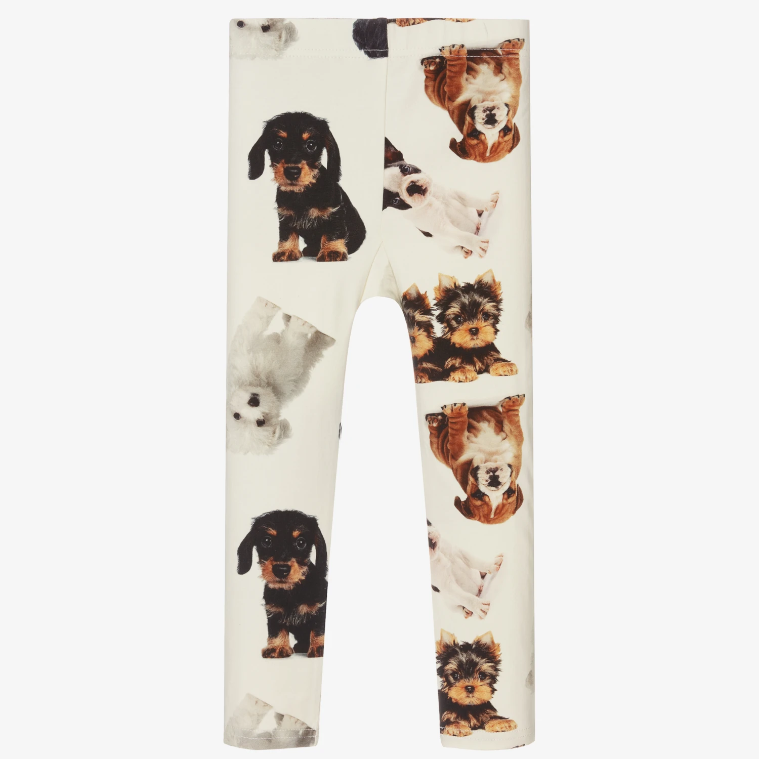 Girls ivory leggings from Rock Your Baby, made in soft cotton jersey. They have a cute all-over puppy print and a comfortable elasticated waistband.
