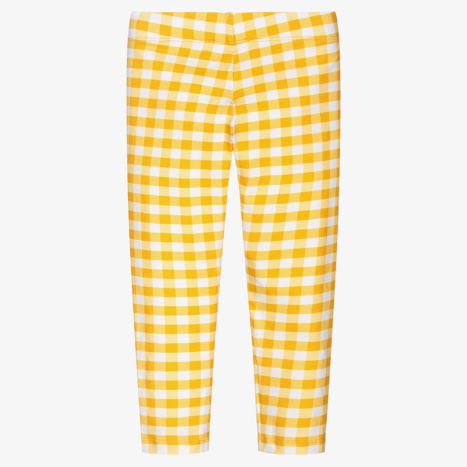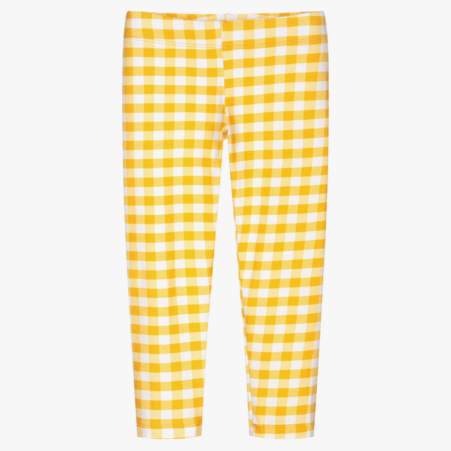 Bright yellow gingham check leggings for girls by Rosalita Senoritas, made in soft and stretchy cotton jersey.