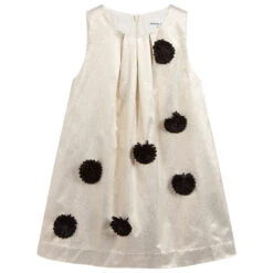 Girls pale gold dress by Sonia Rykiel Paris, made in a lightweight, silky soft fabric. Fastening at the back with a zip, it is fully lined and has stylish black flowers on the front.