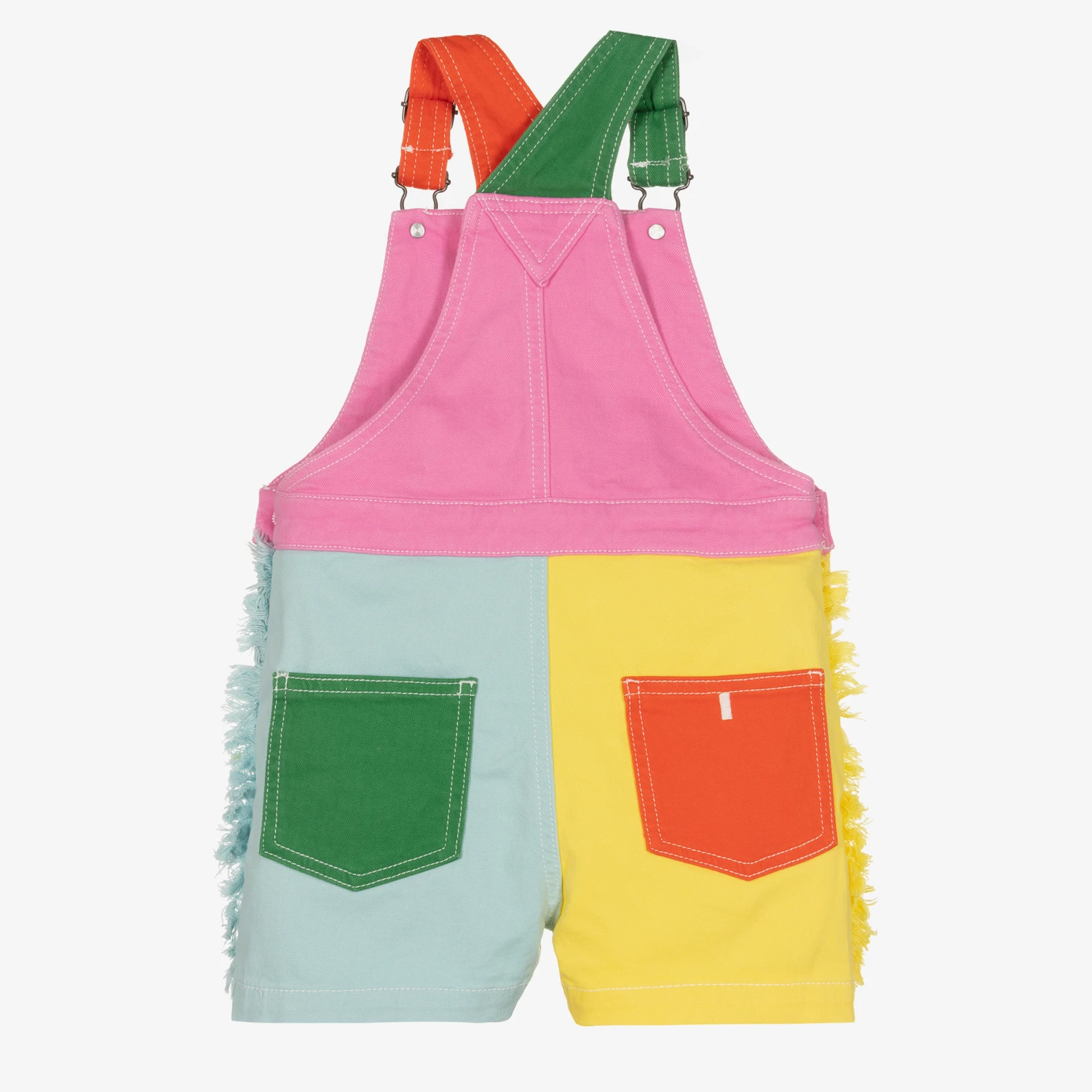 Inspire the imagination with these colour block dungarees for girls, by Stella McCartney Kids, in pink, blue and yellow. Fun and vibrant, they have parrots embroidered on the chest and frayed edging on the sides. They are made in soft and stretchy organic cotton twill, with button fastenings and adjustable shoulder straps for a comfortable fit. There are useful slanted pockets on the front and patch pockets on the back. The Stella McCartney fit can be quite small so choose a size up if you want room to grow.