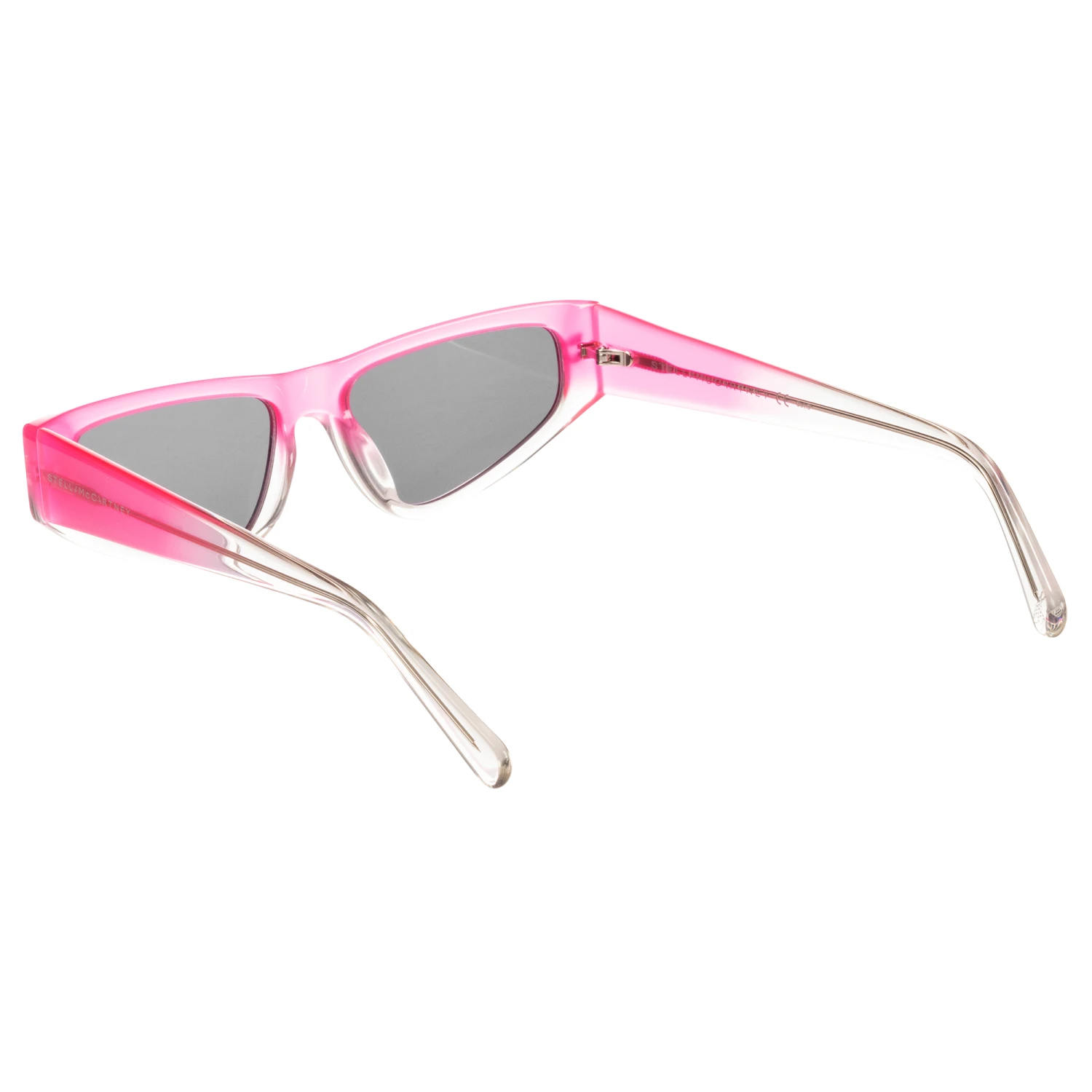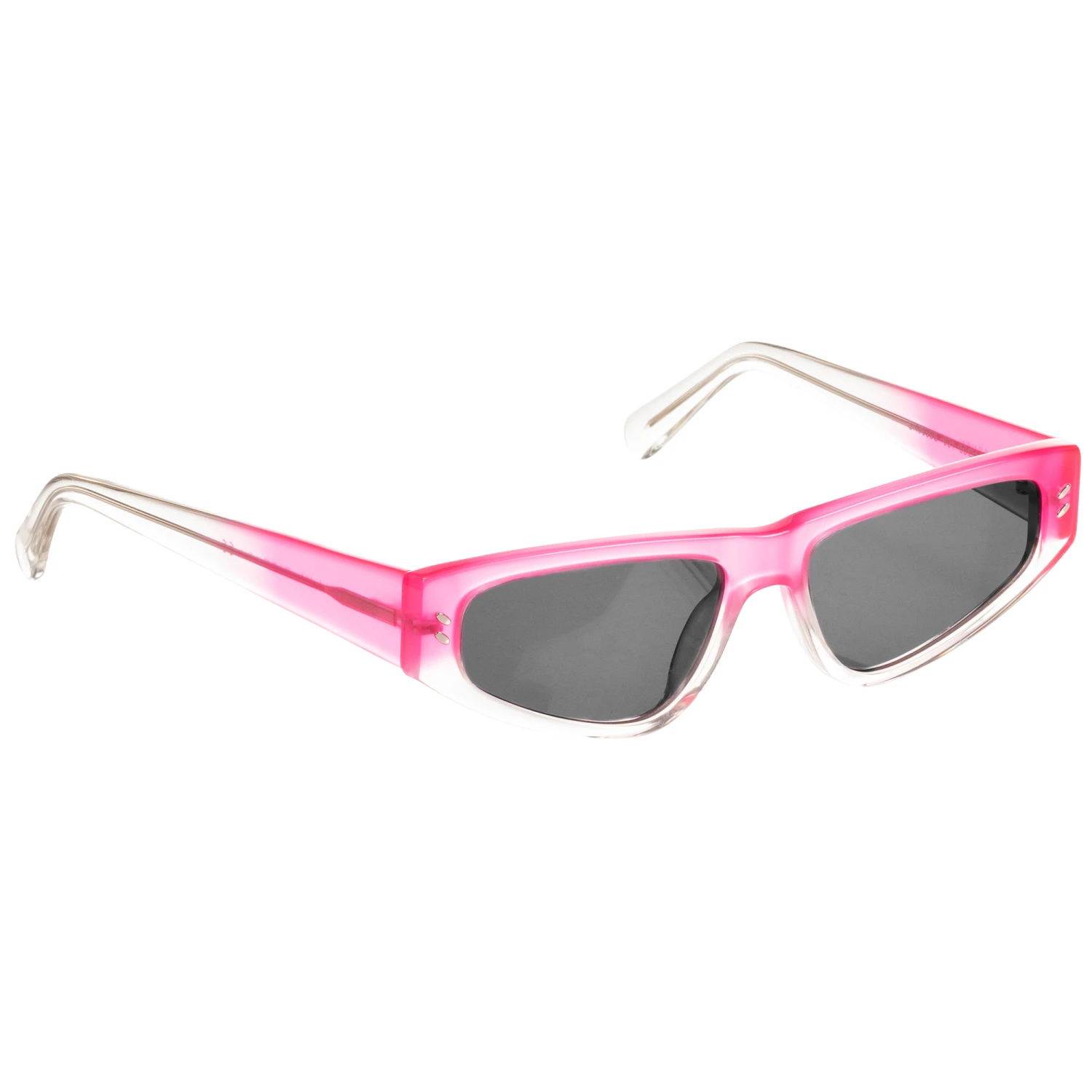 A pair of pink and clear ombre sunglasses for girls by Stella McCartney Kids. They have grey tinted lenses, with category 3 filter against the sun glare. They come with a neoprene case for safe storage.