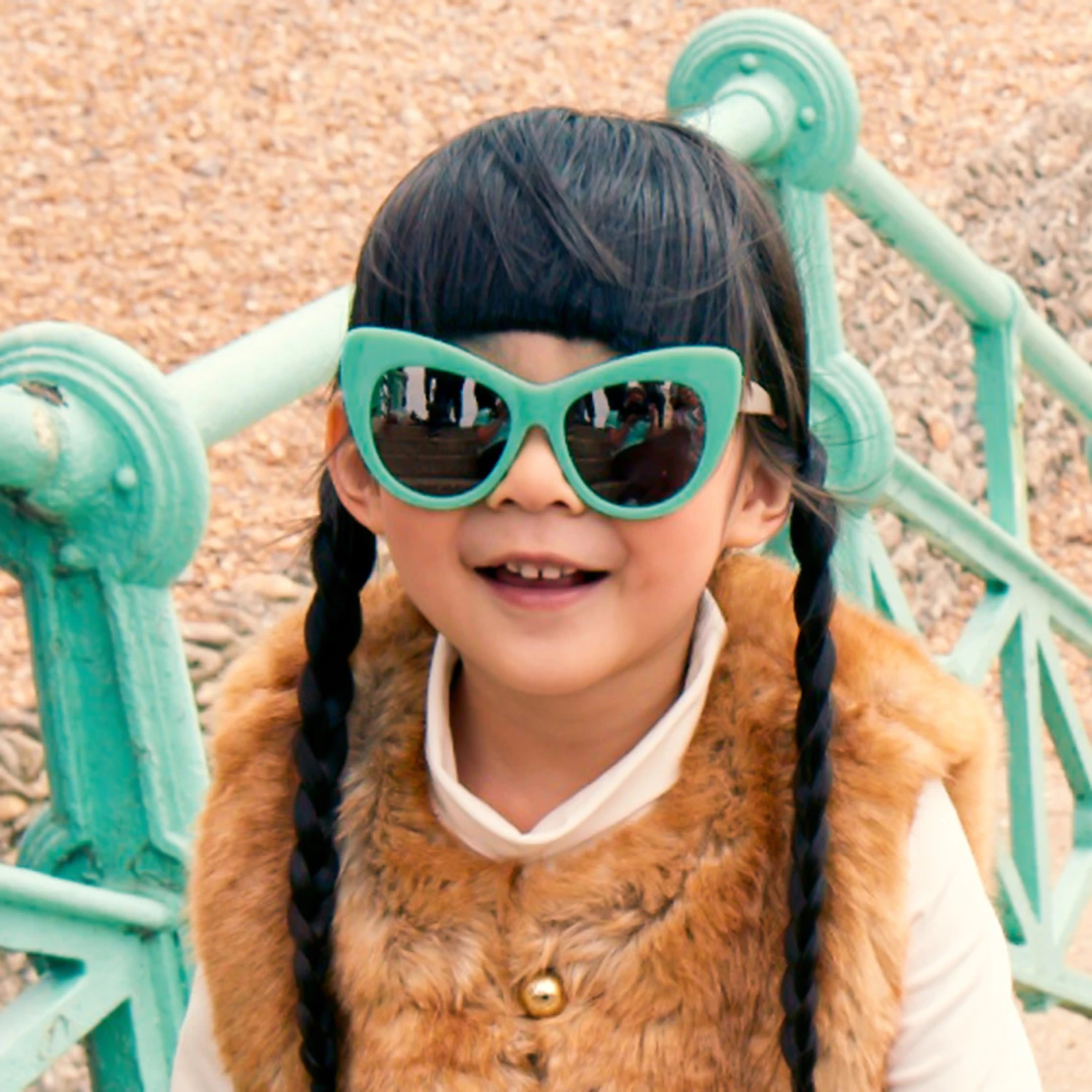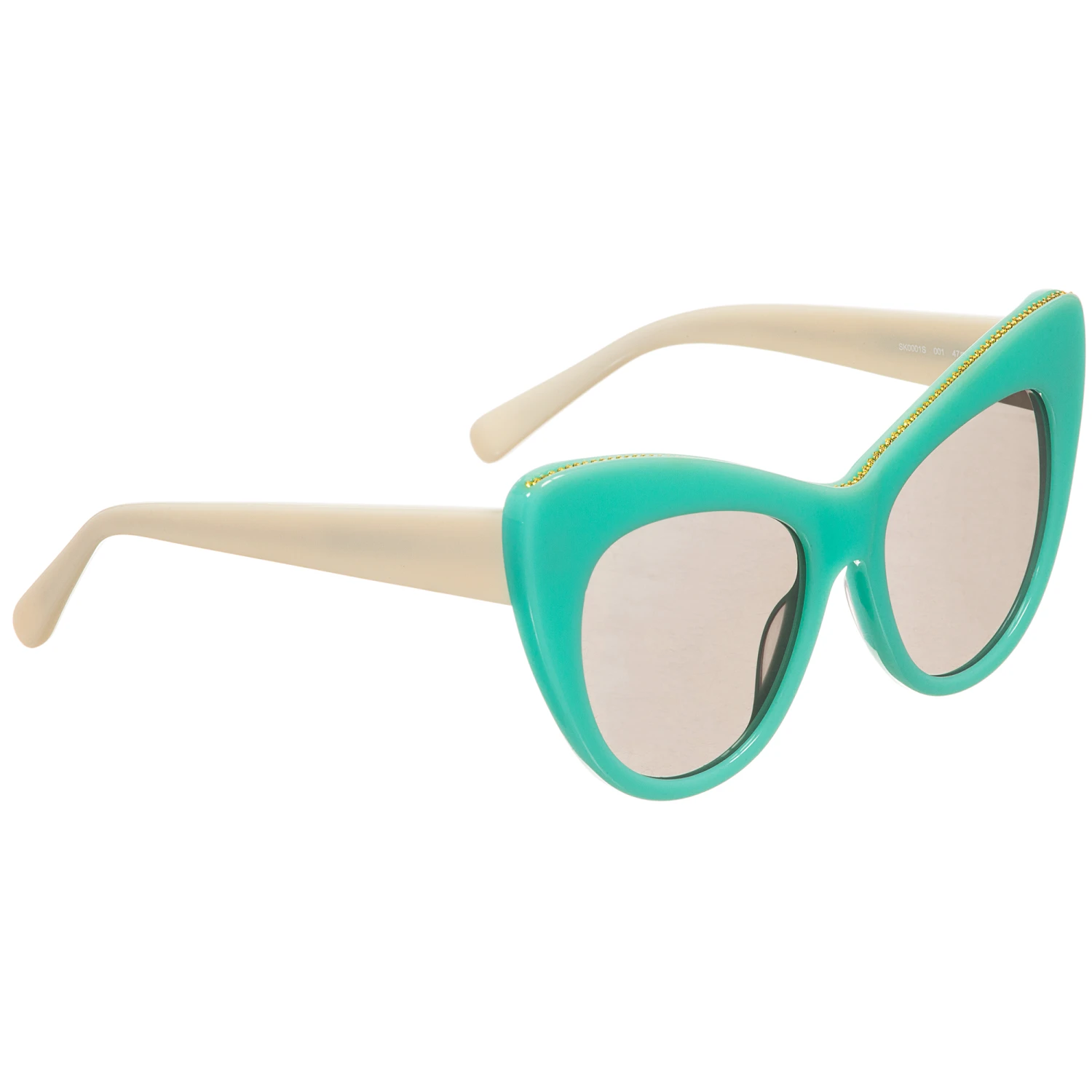 Green and ivory sunglasses by Stella McCartney Kids. With 100% UV protection, these stylish and funky sunglasses have a filter category 2, in a mini-me design inspired by the adult limited edition collection. They have contrasting ivory arms and are embellished with a Falabella gold chain detail and come with a colourful zipped carry pouch.