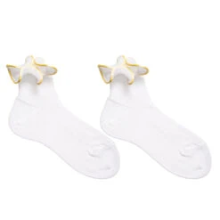 Girls white and yellow ruffle socks by Story Loris. These super fine weave socks are made in pure cotton and have a delicate ruffle trim, edged in yellow.