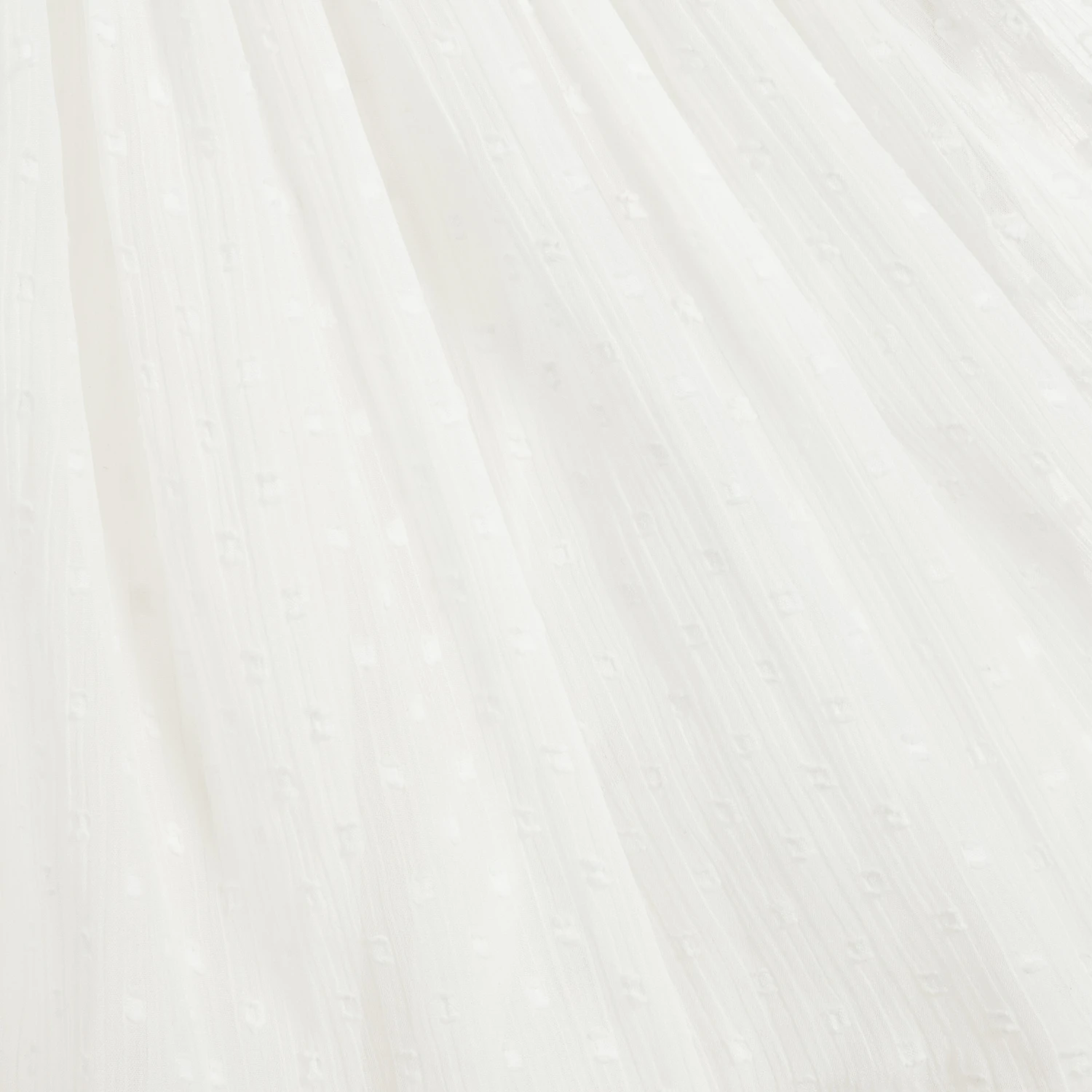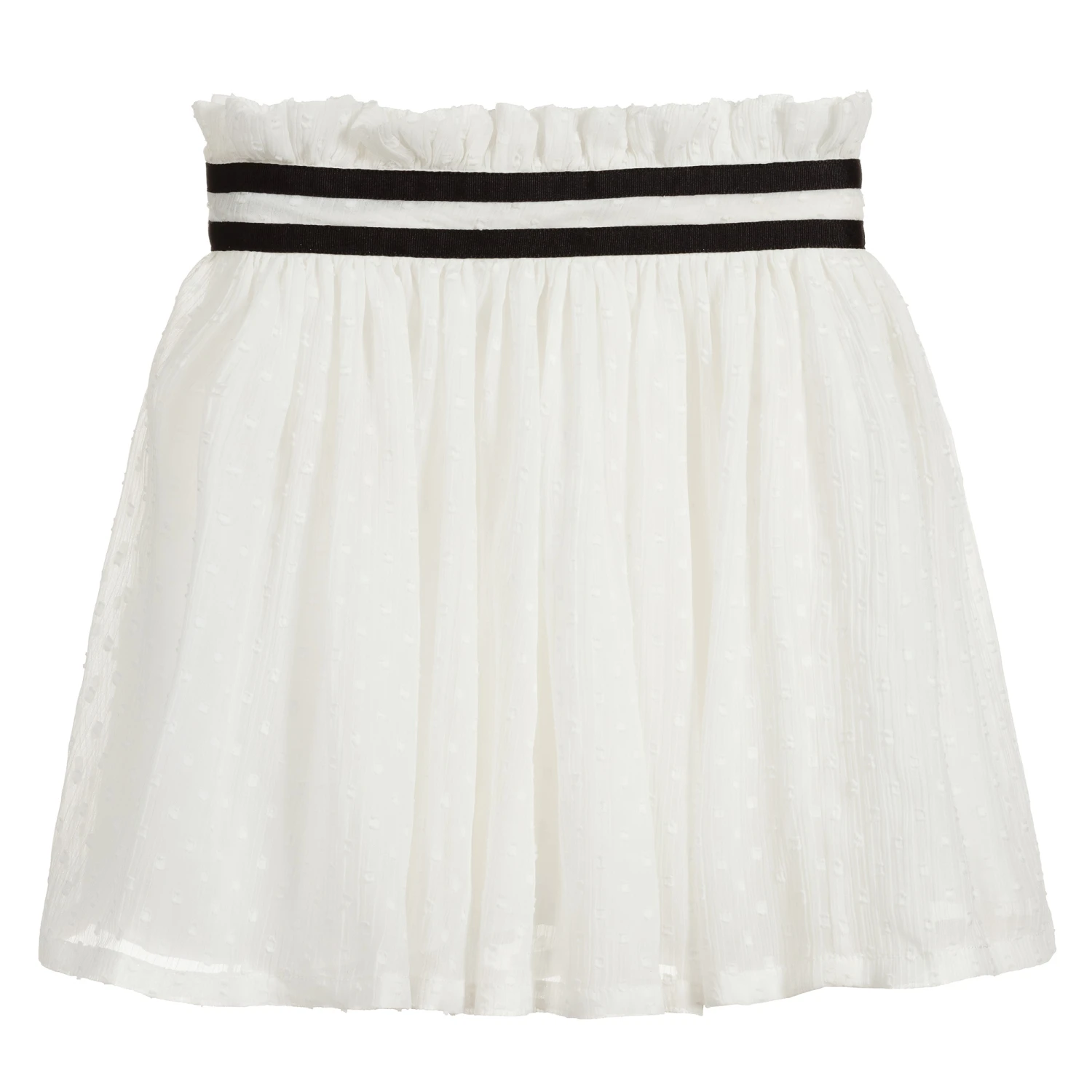 Girls pretty white skirt with black grosgrain ribbon trim from Trussardi. Made in soft chiffon layers with plumeti tufts, and a soft viscose lining. It has a zip fastening on one side.